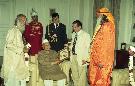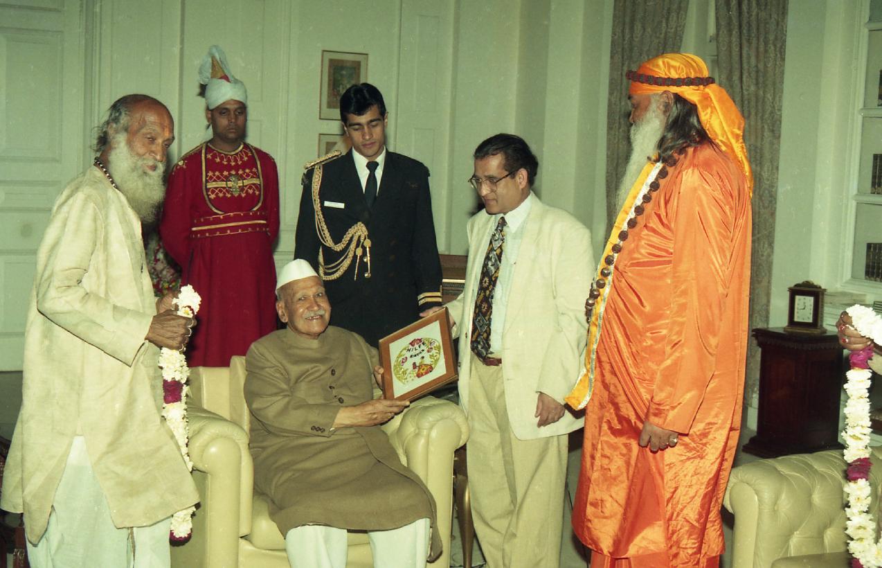 | Caption: | The President of India, Dr. Shankar Dayal Sharma meeting with Swami Pragyanand Ji with others at Rashtrapati Bhavan in New Delhi on February 19, 1997. |