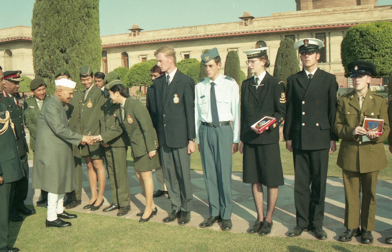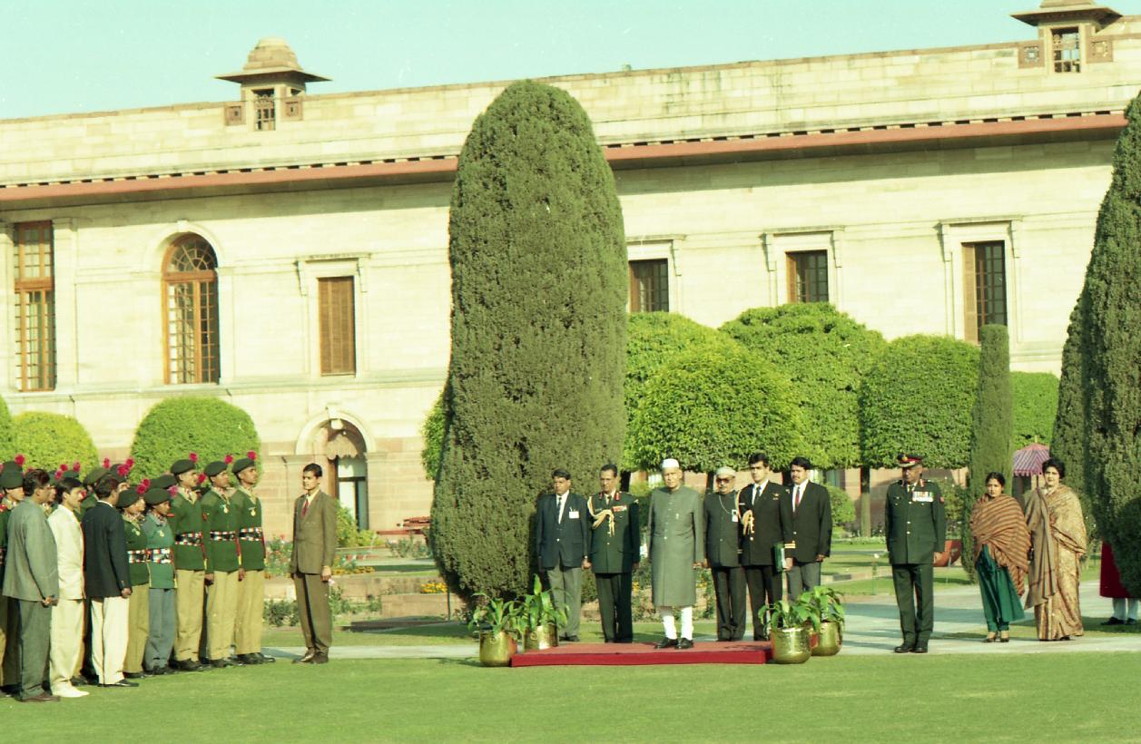 | Caption: | The President of India, Dr. Shankar Dayal Sharma interacting with the contingents of National Cadets Corps, at Rashtrapati Bhavan in New Delhi on January 28, 1997. |