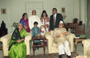 | Caption: | The President of India, Dr. Shankar Dayal Sharma meeting with Shri J.N. Kashyap with family at Rashtrapati Bhavan in New Delhi on March 26, 1997. |