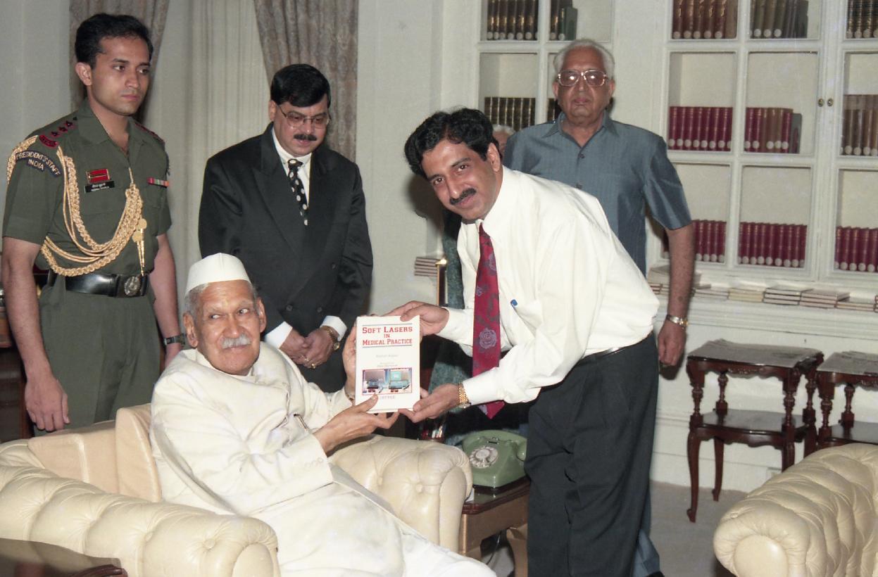 | Caption: | The President of India, Dr. Shankar Dayal Sharma meeting with Dr. Raman Kapoor with others at Rashtrapati Bhavan in New Delhi on March 26, 1997. |