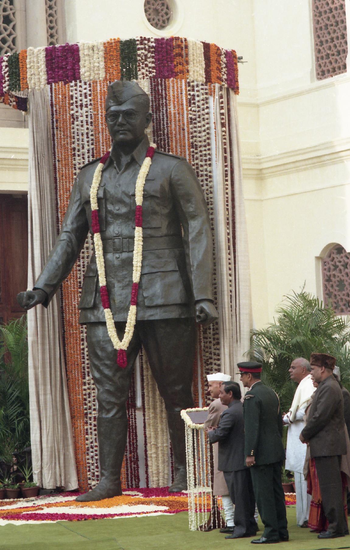 | Caption: | The President of India, Dr. Shankar Dayal Sharma unveiling the Statue of Netaji Subhash Chandra Bose at Parliament House in New Delhi on January 23, 1997. |
