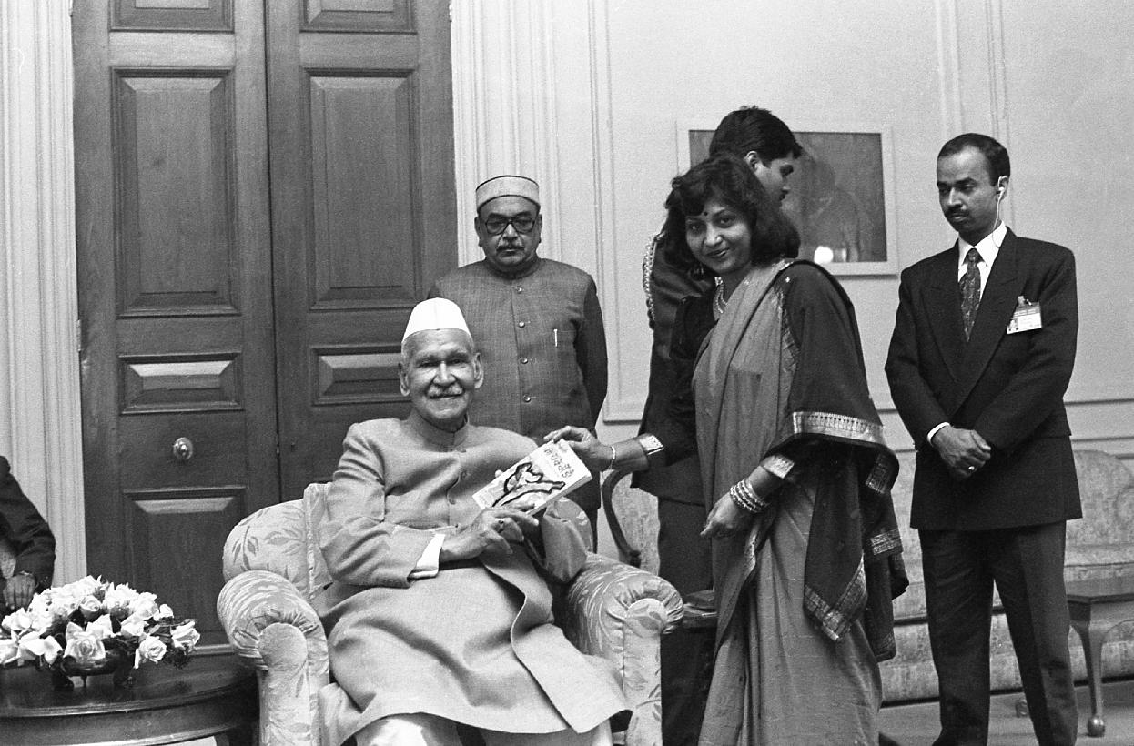 | Caption: | The President of India, Dr. Shankar Dayal Sharma receiving a copy of the book "Taekwondo" from Smt. Chitra Garg with others at Rashtrapati Bhavan in New Delhi on January 15, 1997. |