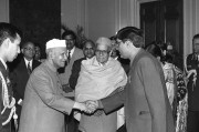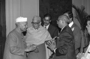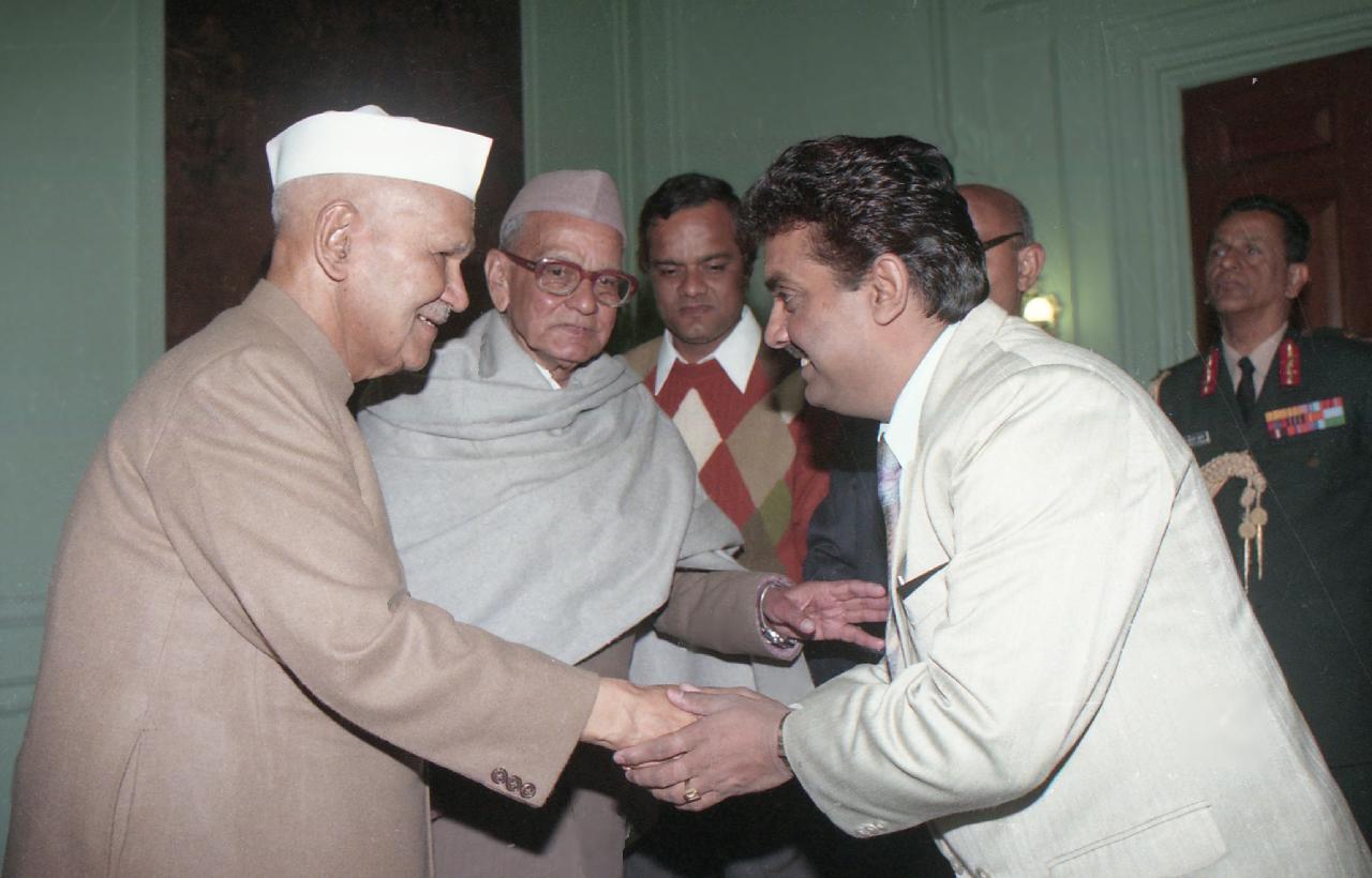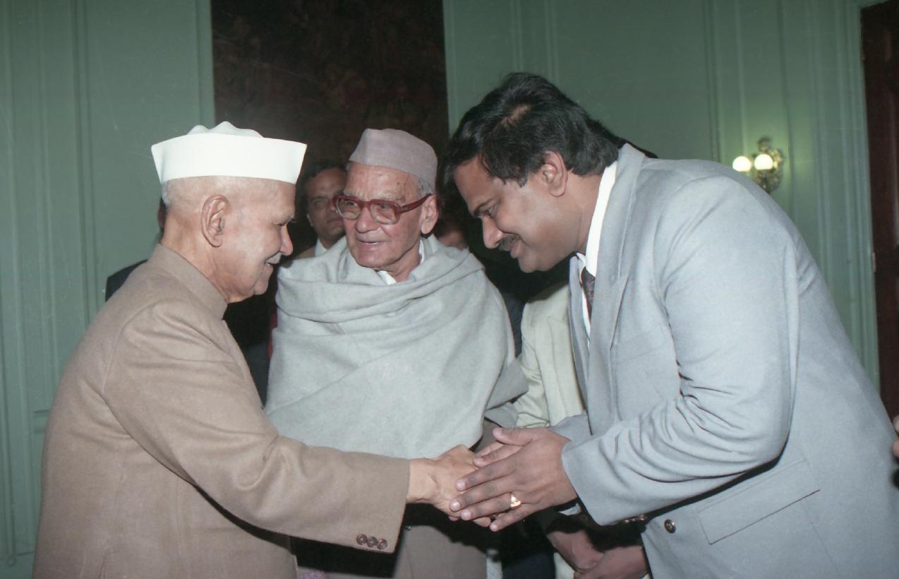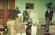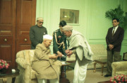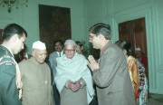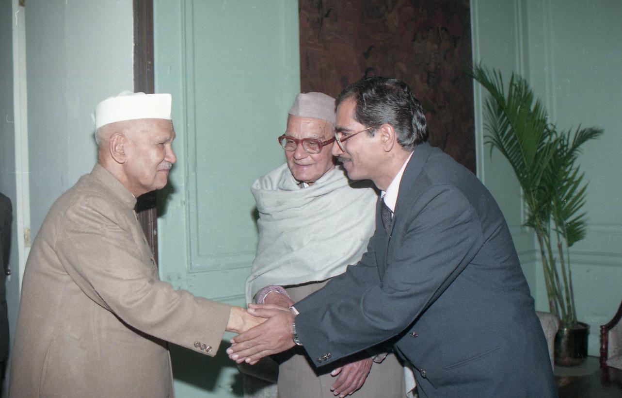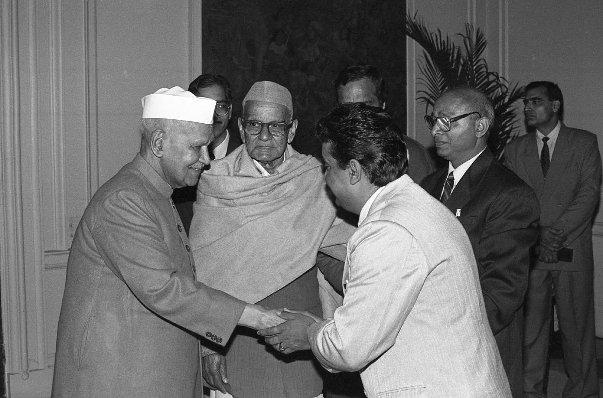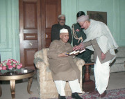 | Caption: | The President of India, Dr. Shankar Dayal Sharma receiving a copy of the book "Dwarika Prasad Maheshwari Rachnawali" in three volumes from Dwarika Prasad Maheshwari at Rashtrapati Bhavan in New Delhi on February 04, 1997. |