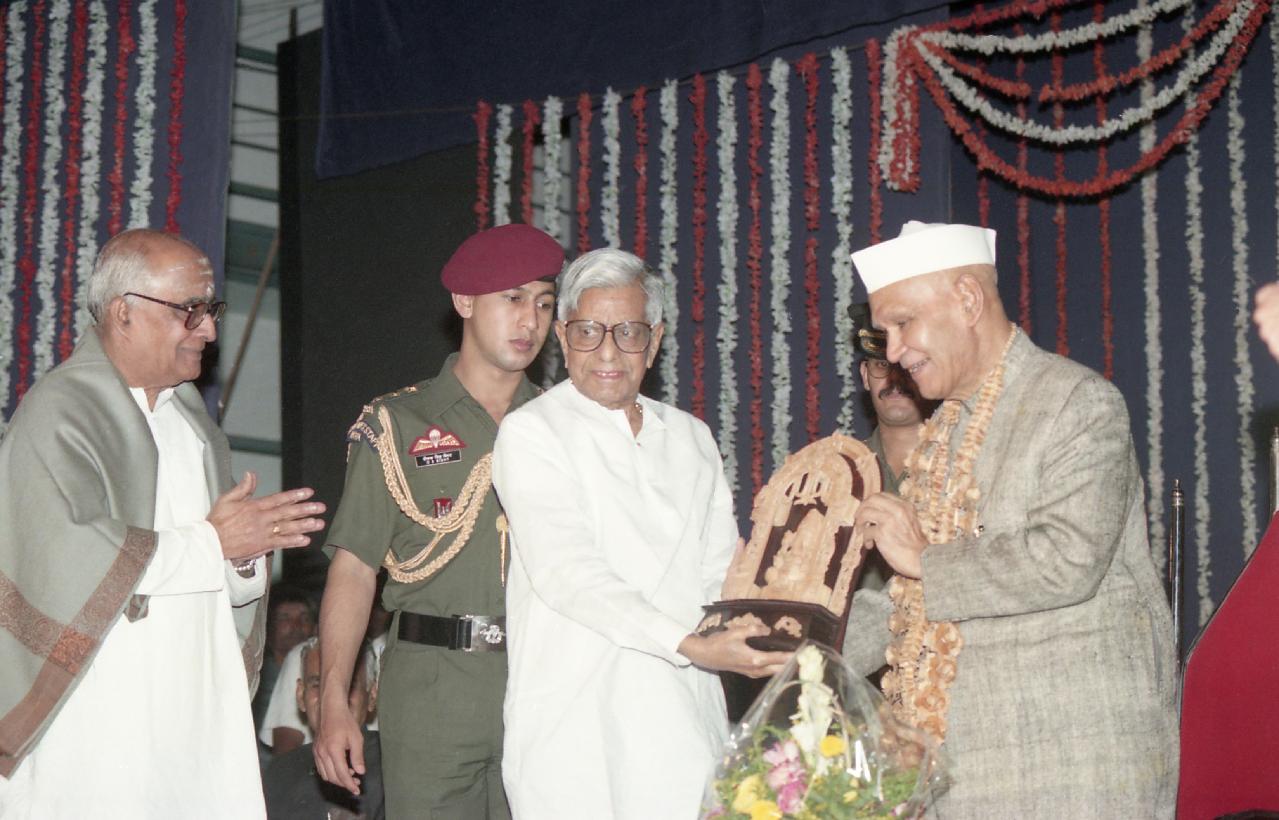 | Caption: | The President of India, Dr. Shankar Dayal Sharma during the presentation of Bhartiya Vidya Bhavan's publications Kamba Ramayanam, an English prose rendering by Dr. HV Hande and Five hundred thousandth copy of Ramayana & Mahabharata by Shri C Rajagopalchari, at Chennai, in Tamil Nadu on January 21, 1997. |