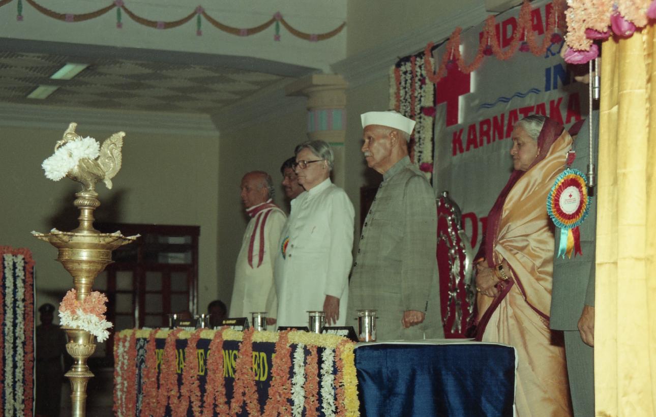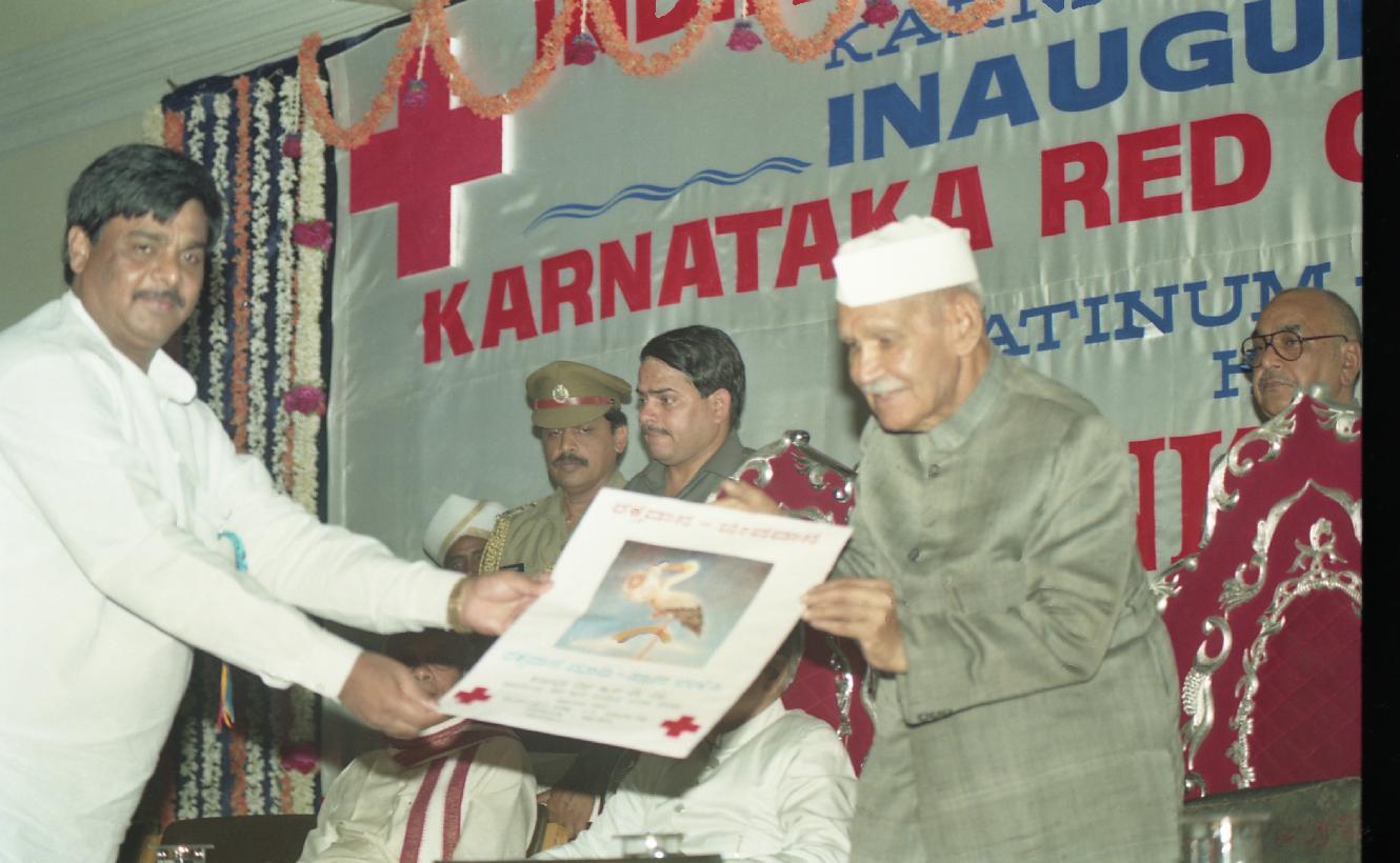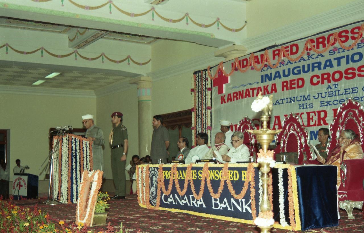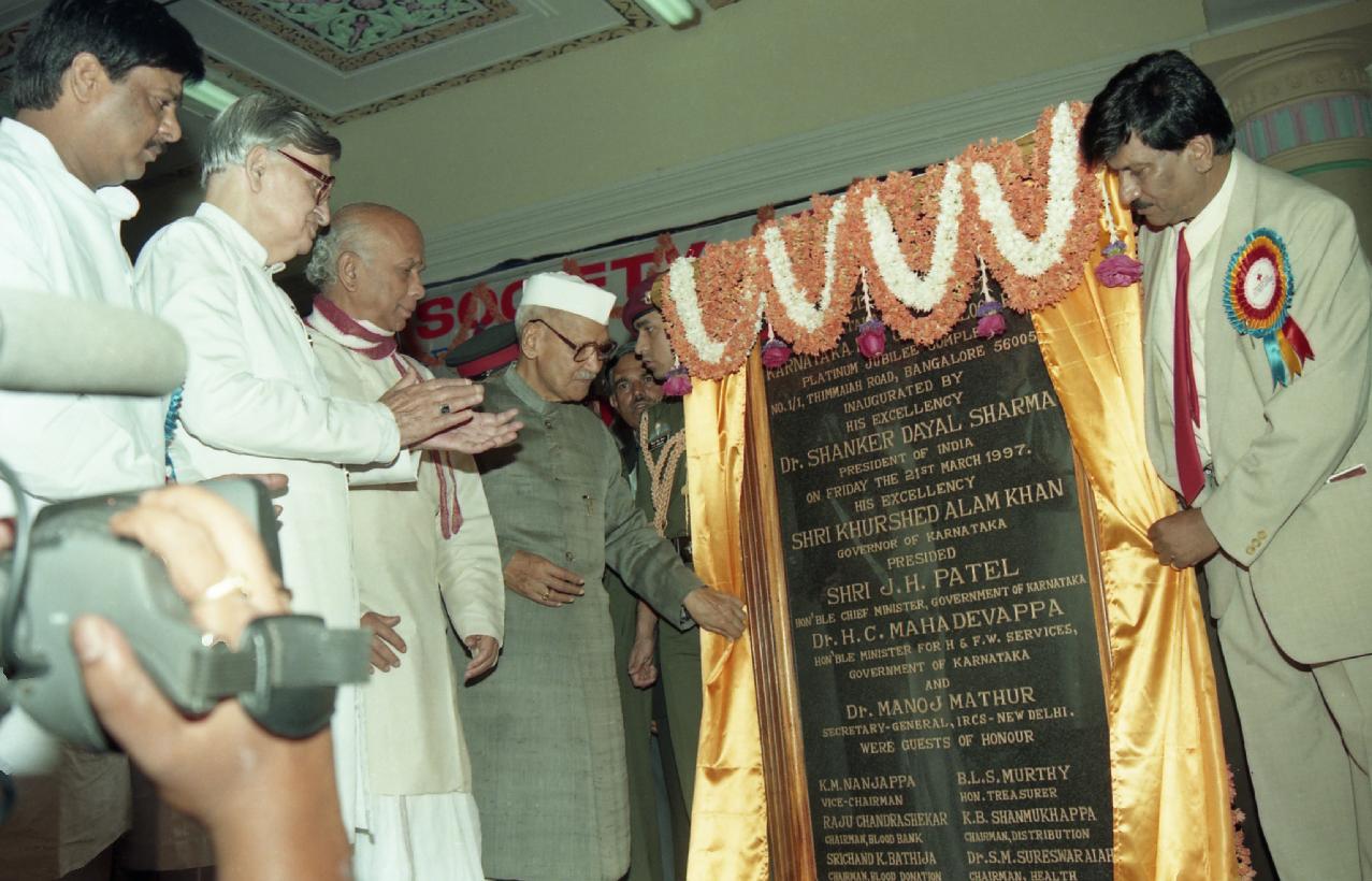 | Caption: | The President of India, Dr. Shankar Dayal Sharma inaugurating the Platinum Jubilee Complex of Karnataka Branch of Indian Red Cross Society, at Vidhana Soudha, Bangalore on March 21, 1997. |