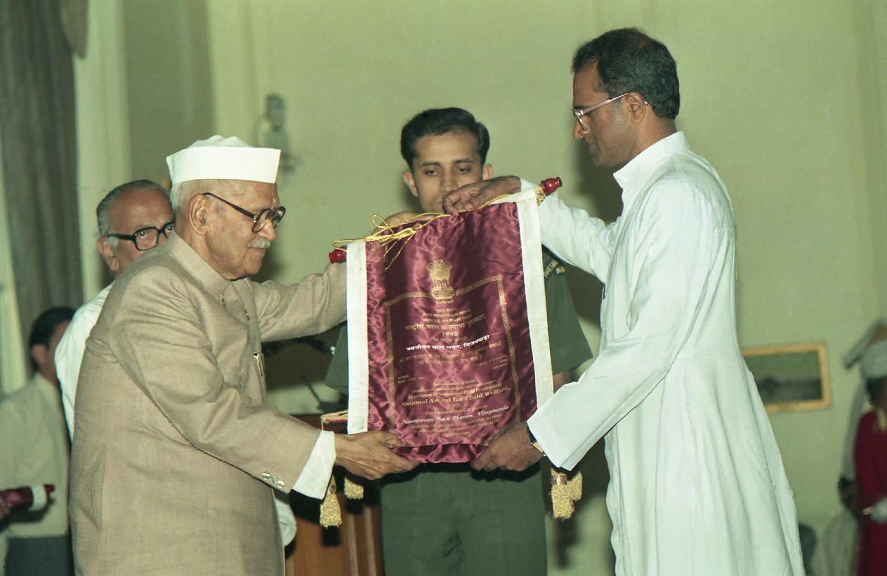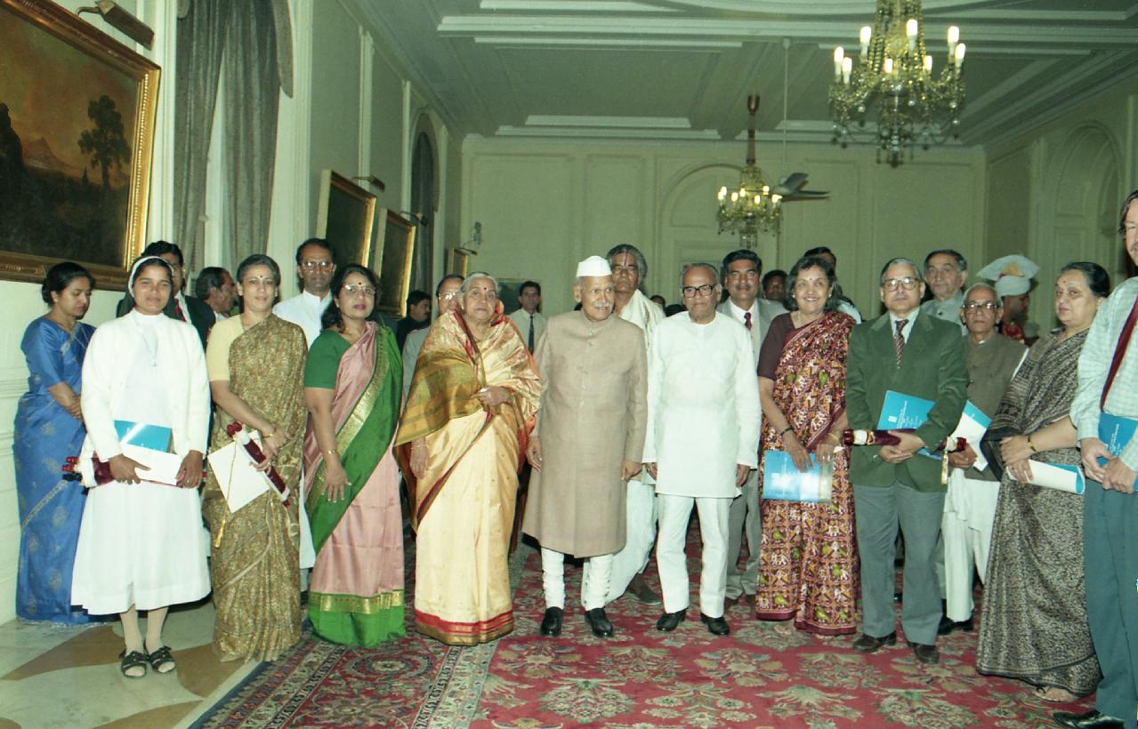 | Caption: | The President of India, Dr. Shankar Dayal Sharma presenting National Awards for Child Welfare, at Rashtrapati Bhavan in New Delhi on March 03, 1997. |