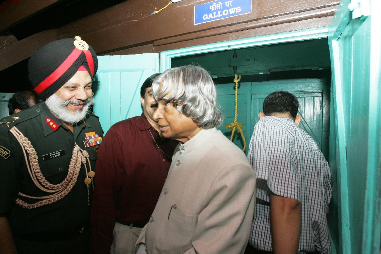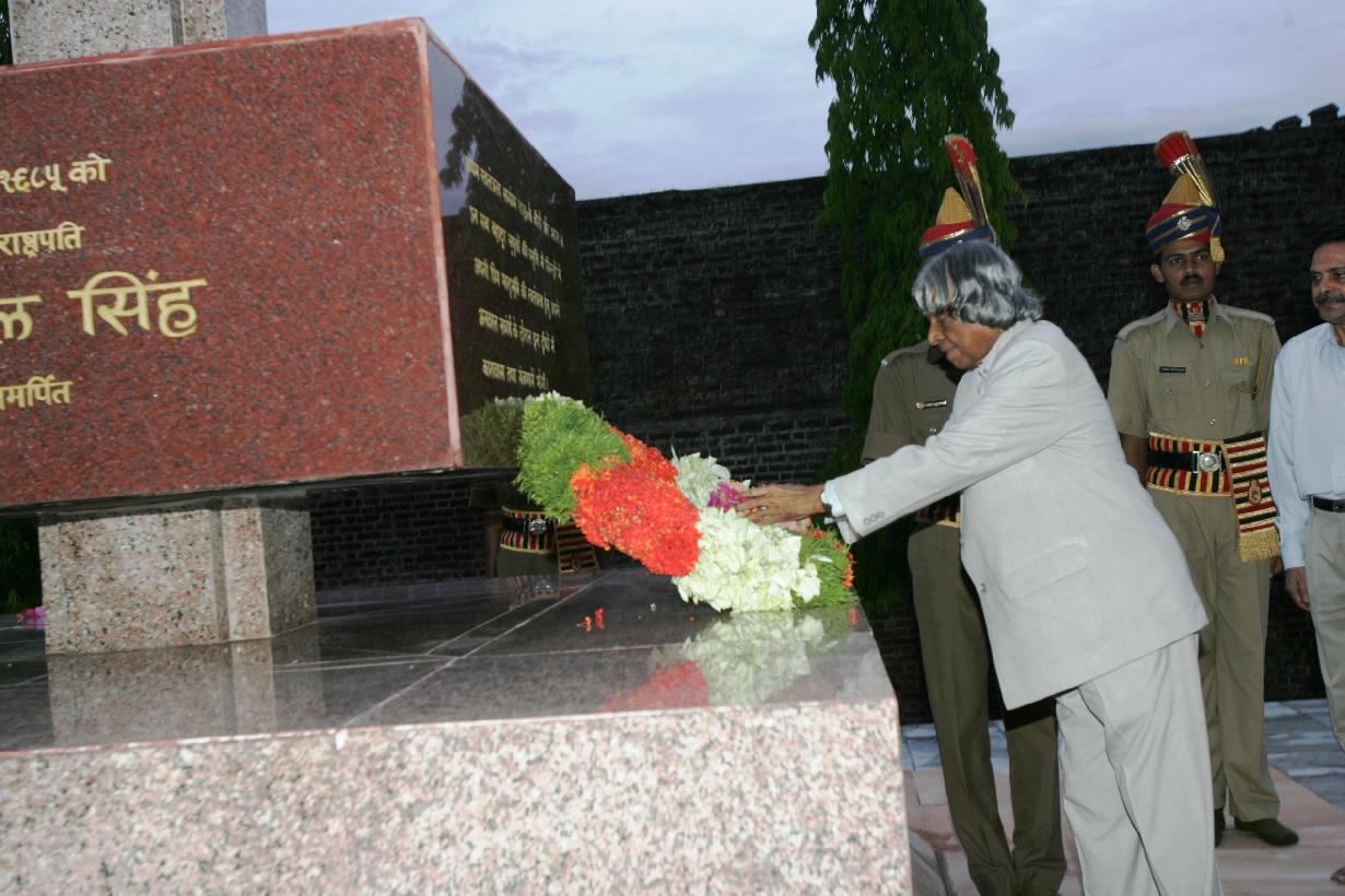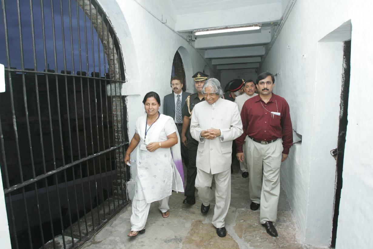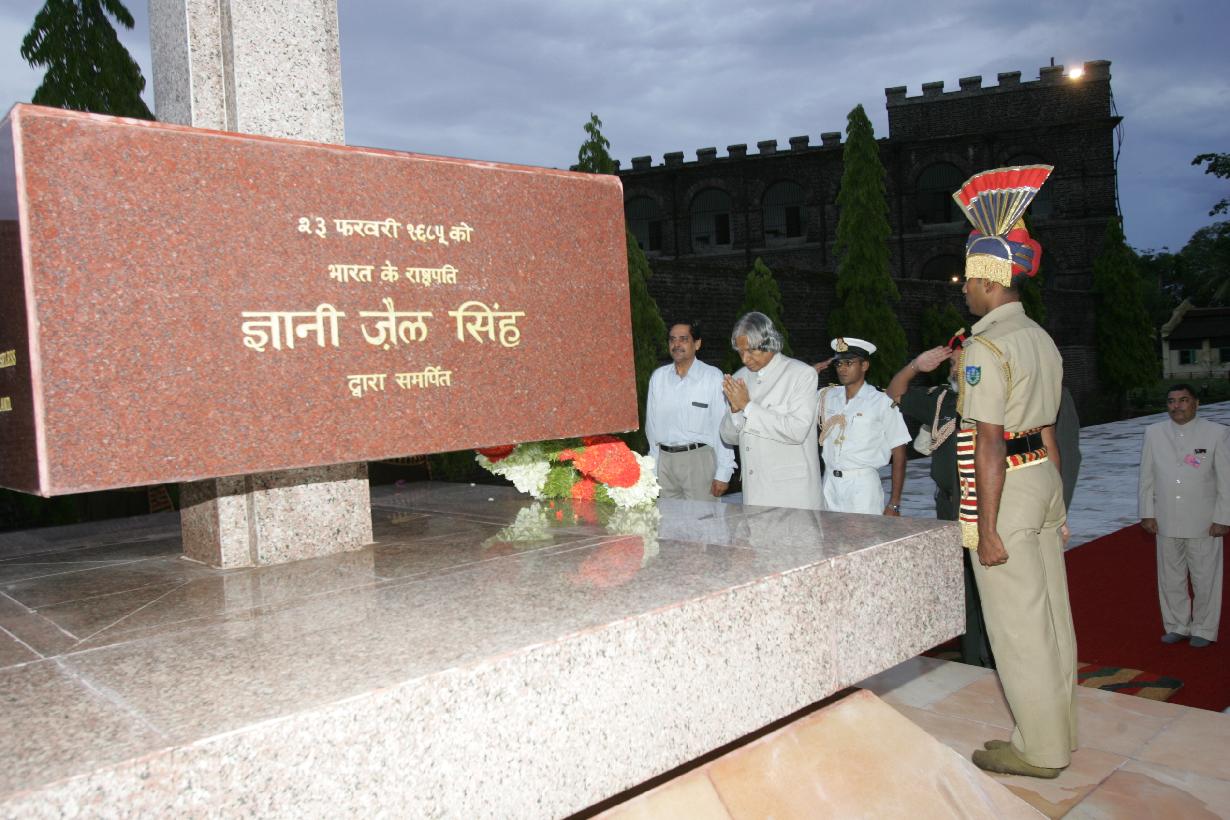 | Caption: | The President of India, Dr A P J Abdul Kalam laying the wreath at Martyr's Column during his visit to Cellular Jail (National Memorial) at Port Blair in Andaman & Nicobar on May 05, 2005 |