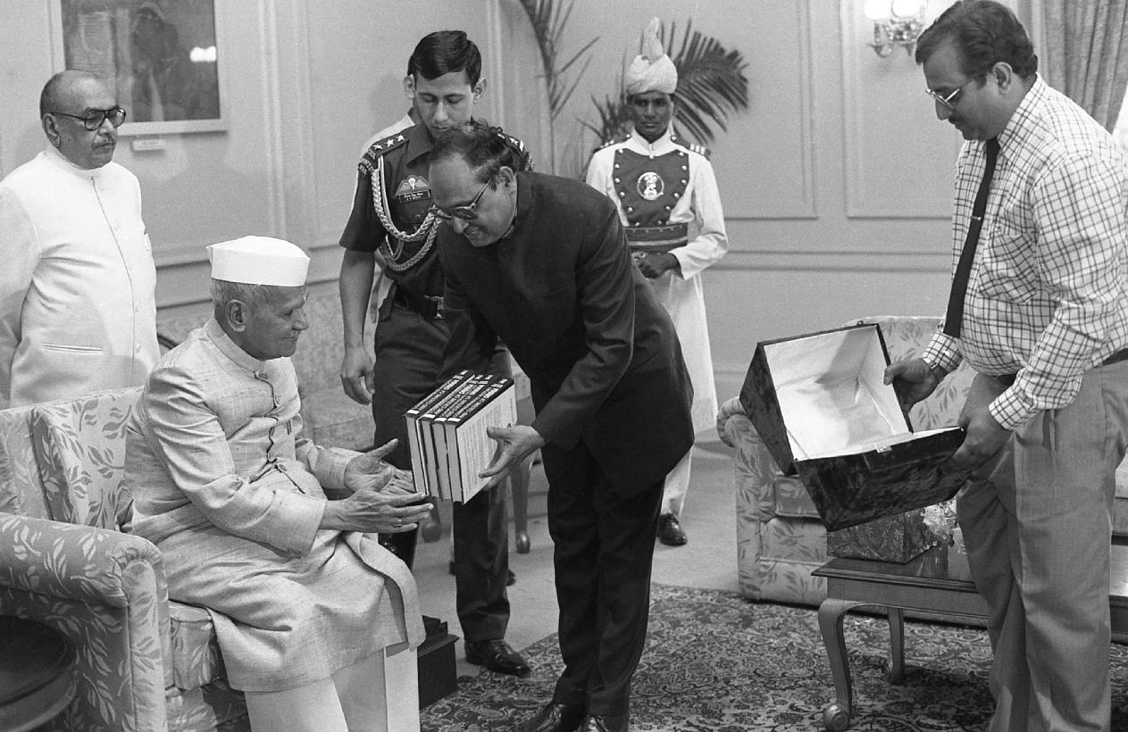 | Caption: | The President of India, Dr. Shankar Dayal Sharma receiving a copy of book "Comprehensive History and Culture of Orissa" from Dr. P.K. Mishra & Dr. J.K. Samal at Rashtrapati Bhavan in New Delhi on March 26, 1997. |