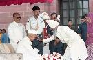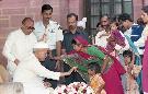 | Caption: | The President of India, Dr. Shankar Dayal Sharma receiving Holi greetings from the Vice President, Shri K.R. Narayanan, the Prime Minister, Shri H.D. Deve Gowda and Public, at Rashtrapati Bhavan, in New Delhi on March 24, 1997. |