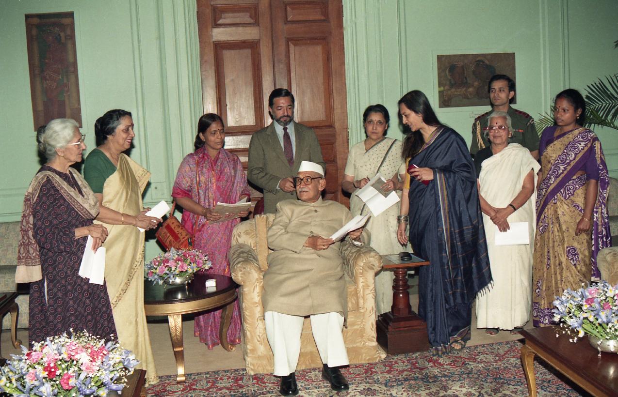 | Caption: | The President of India, Dr. Shankar Dayal Sharma meeting with the representatives of seven National Women's Organisations at Rashtrapati Bhavan in New Delhi on March 07, 1997. |