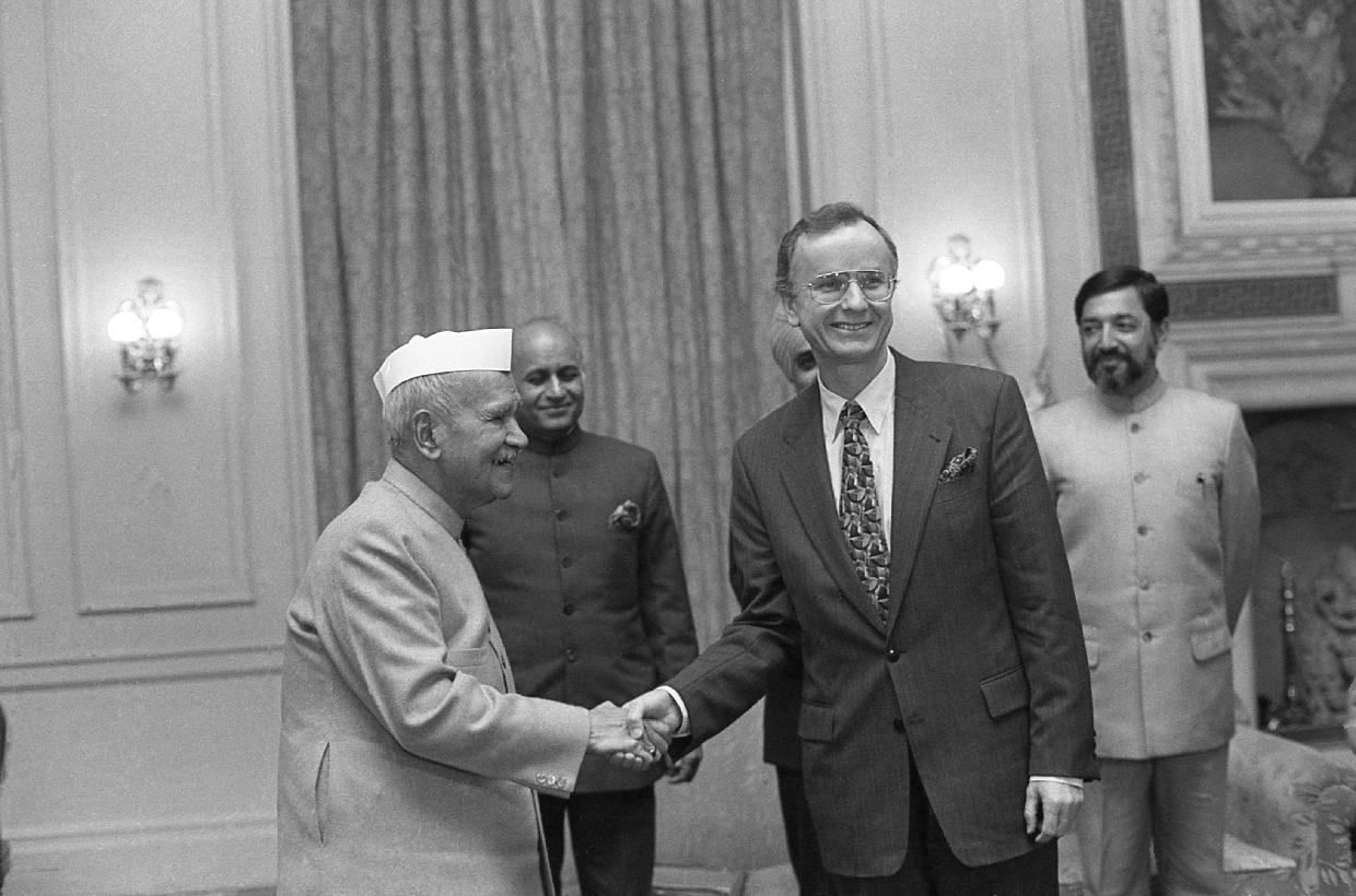 | Caption: | The Dy. Prime Minister & Finance Minister of Poland, HE Mr. Grzegorz W Kolodko calling on the President of India, Dr. Shankar Dayal Sharma, at Rashtrapati Bhavan in New Delhi on January 11, 1997. |
