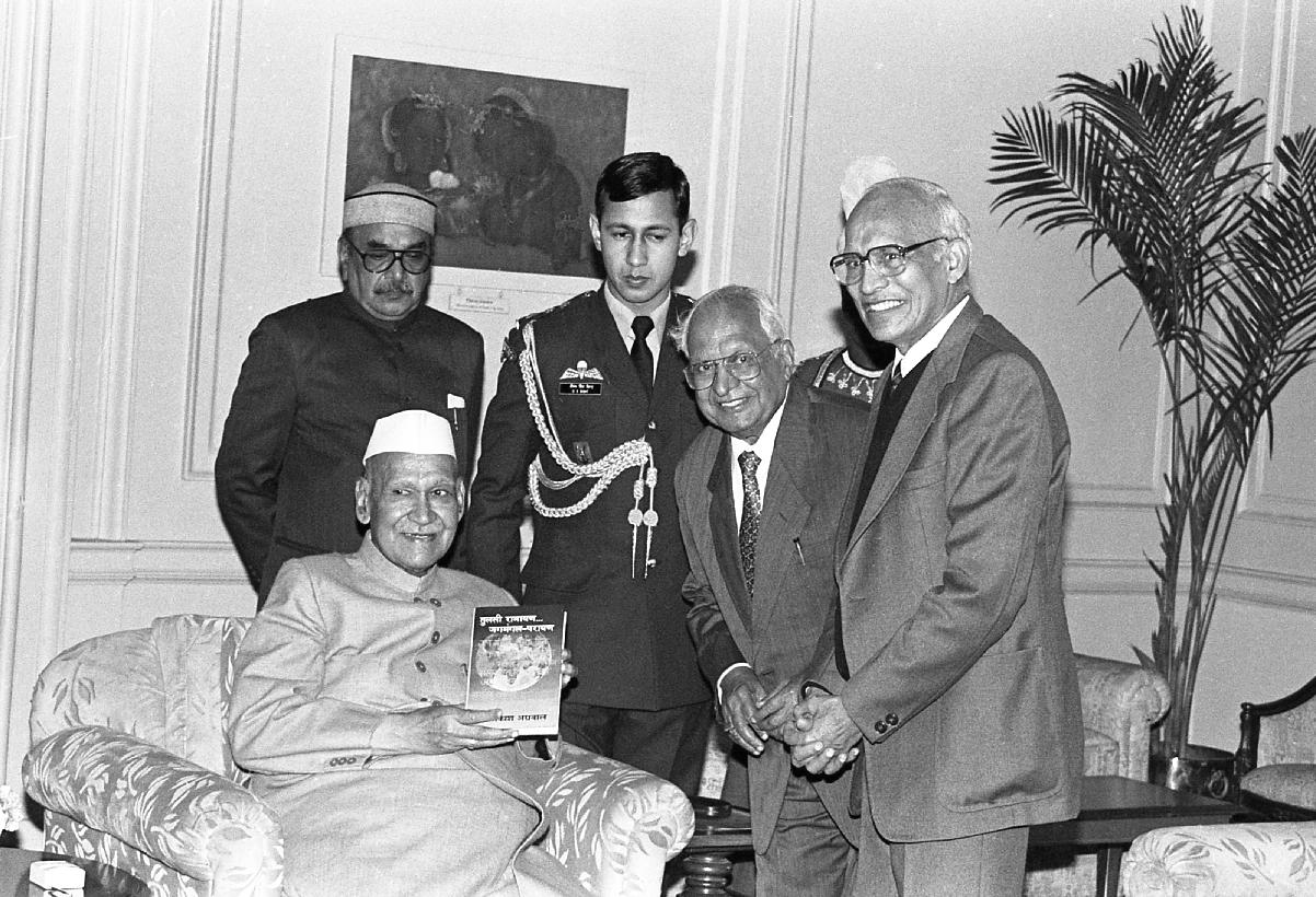 | Caption: | The President of India, Dr. Shankar Dayal Sharma receiving a copy of the book "Tulsi Ramayan-Jagamangal Prayan" from Dr. Satya P. Agarwal at Rashtrapati Bhavan in New Delhi on January 31, 1997. |