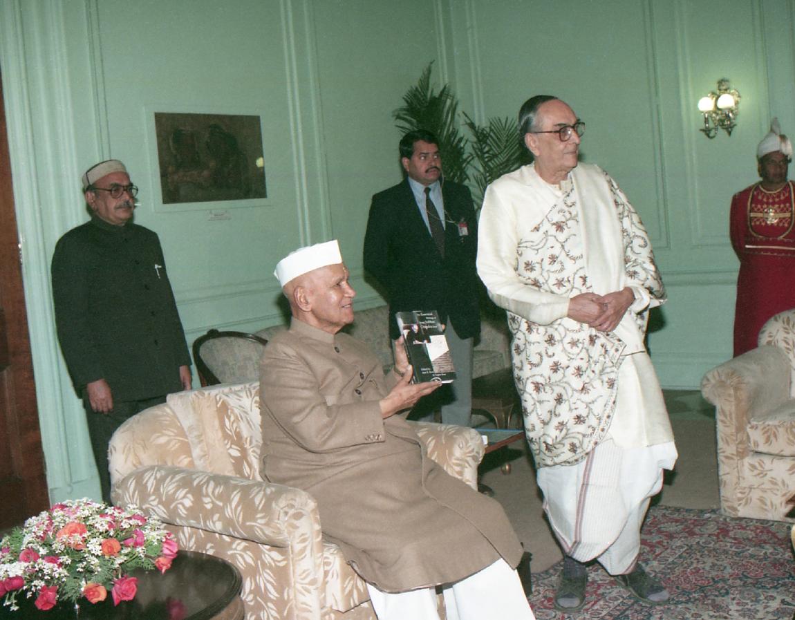 | Caption: | The President of India, Dr. Shankar Dayal Sharma receiving a copy of the book "The Essential Writings of Netaji Subhash Chandra Bose" from Dr. Sisir Kumar Bose & Smt. Sugata Bose at Rashtrapati Bhavan in New Delhi on January 22, 1997. |