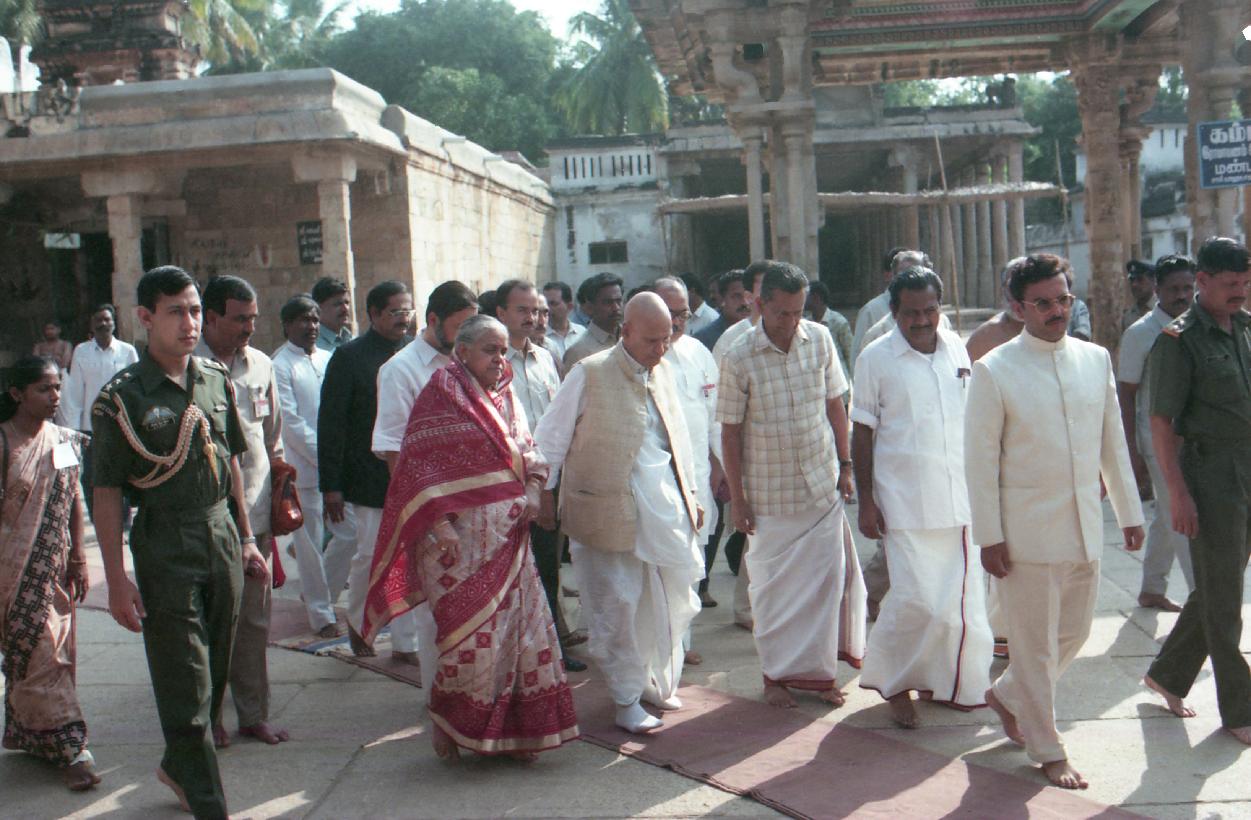 | Caption: | The President of India, Dr. Shankar Dayal Sharma visits Srirangam Temple, at Tiruchirappalli, in Tamil Nadu on January 20, 1997. |