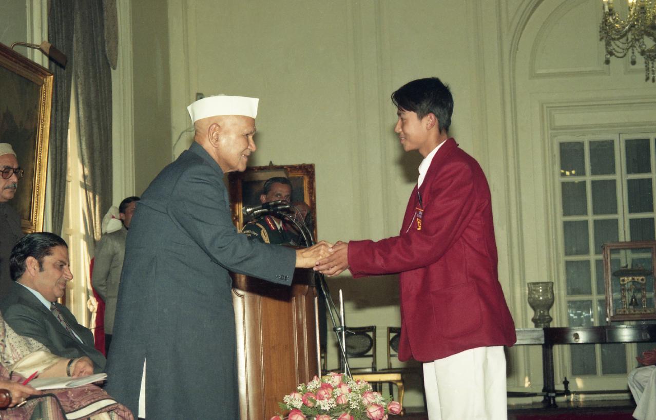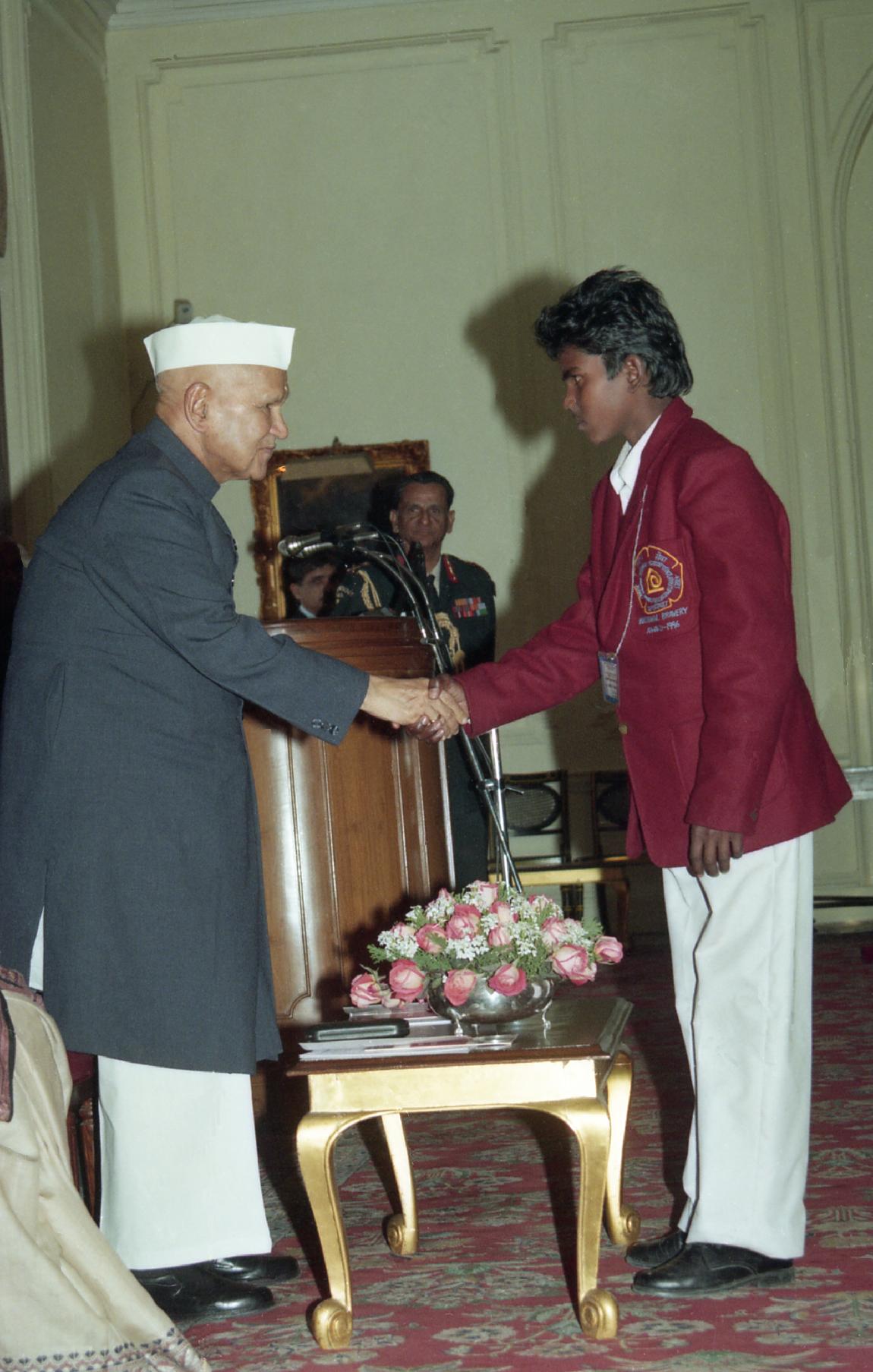 | Caption: | The President of India, Dr. Shankar Dayal Sharma meeting with National Bravery Awards winning Children at Rashtrapati Bhavan in New Delhi on January 22, 1997. |