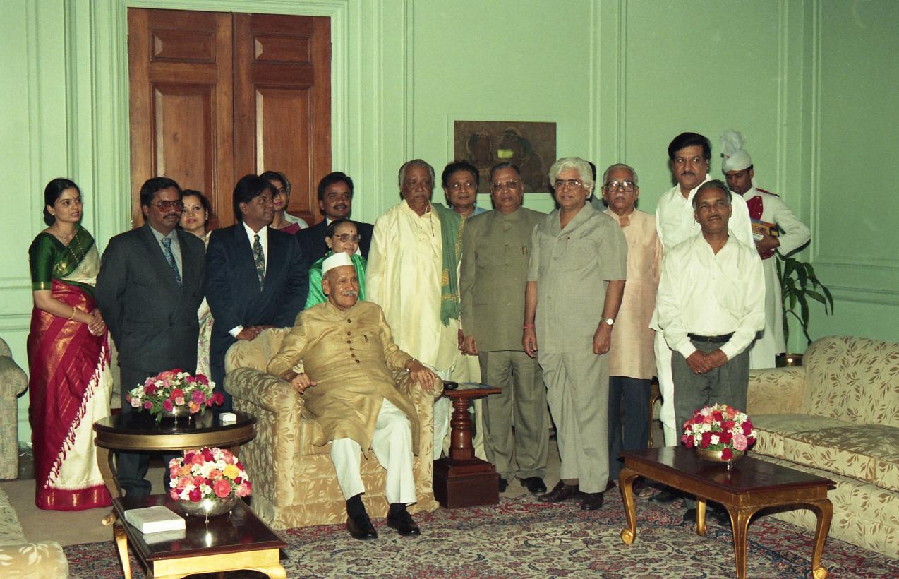 | Caption: | The President of India, Dr. Shankar Dayal Sharma receiving a set of publications brought out by Sumangal Publishing Company, Mumbai at Rashtrapati Bhavan in New Delhi on April 24, 1997. |