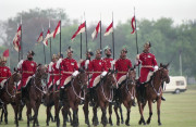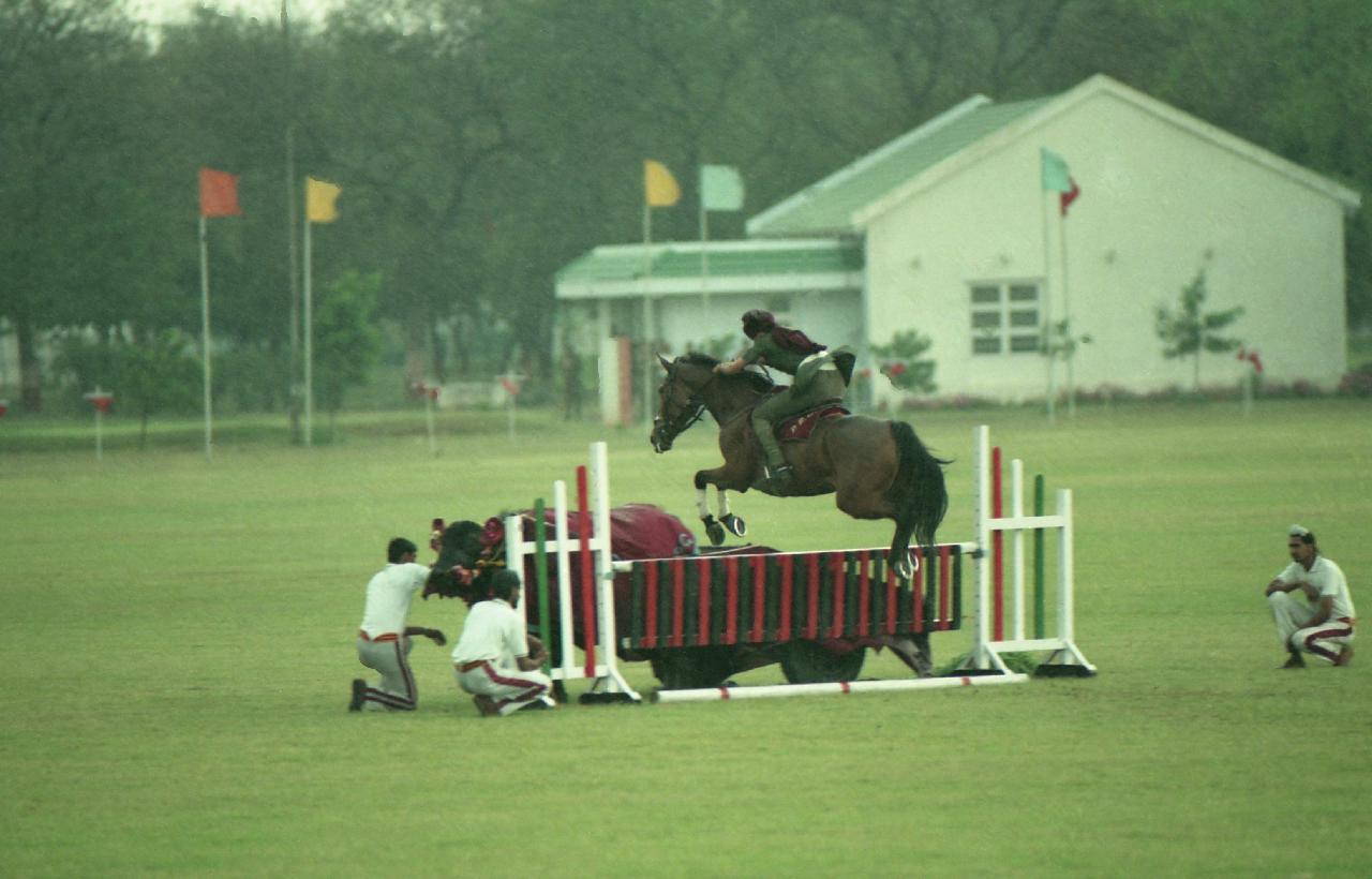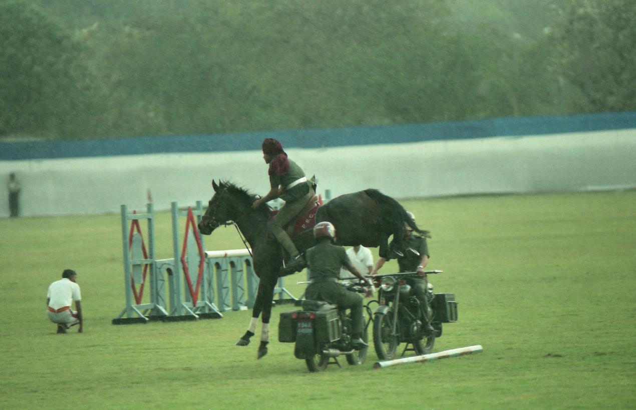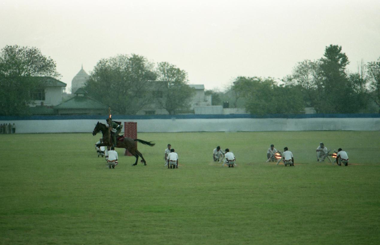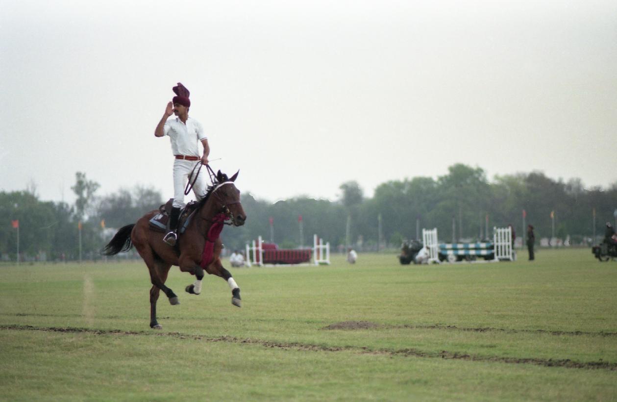 | Caption: | The President of India, Dr. Shankar Dayal Sharma alongwith the Sultan of Oman, H.M. Sultan Qaboos Bin Said witnessing an Equesterian display by the President's Bodyguard, at Jaipur Polo Ground, in New Delhi on April 02, 1997. |
