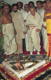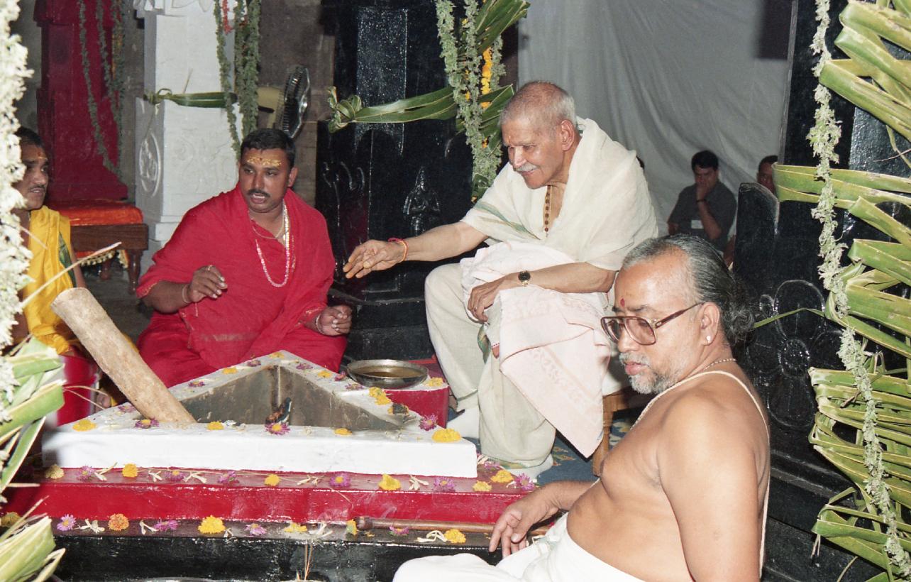 | Caption: | The President of India, Dr. Shankar Dayal Sharma performing puja at Sri Bhramaramba Devi Temple, at Srisailam on April 15, 1997. |