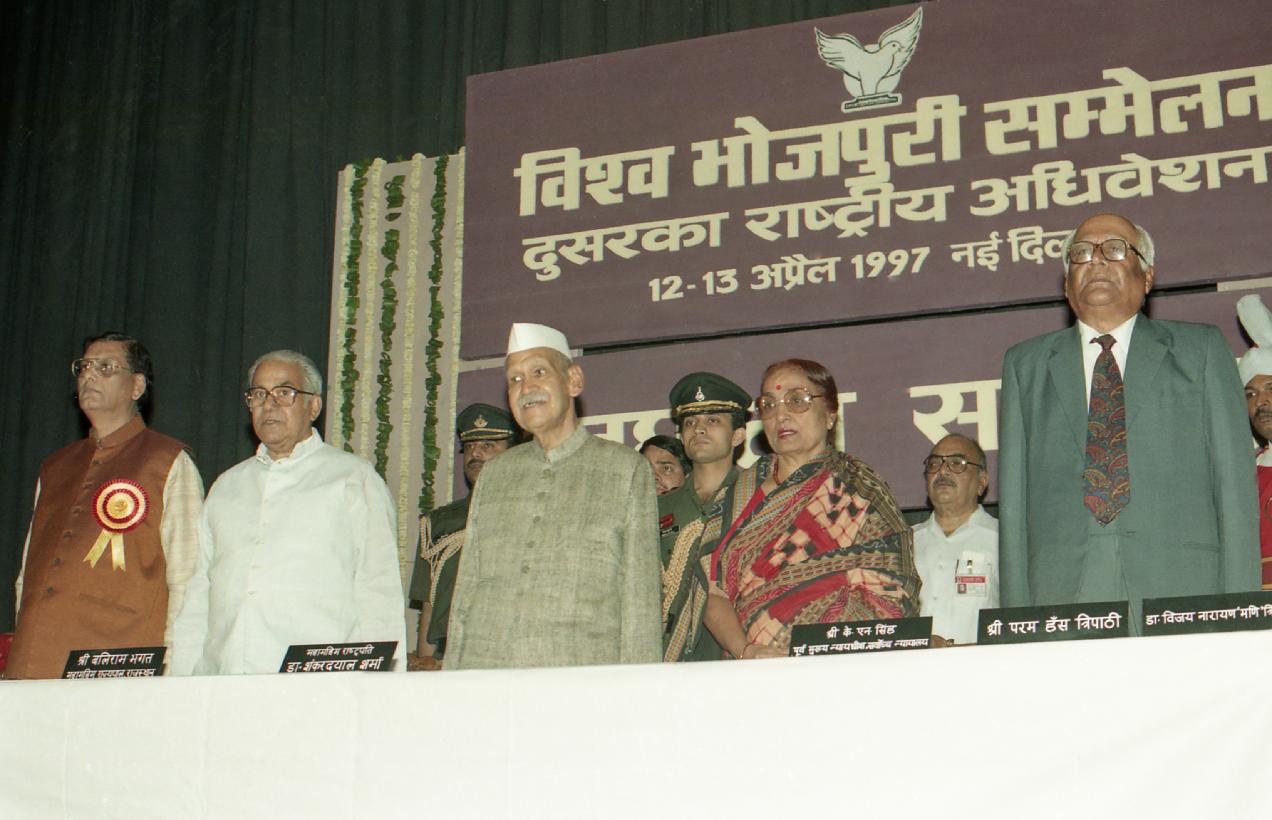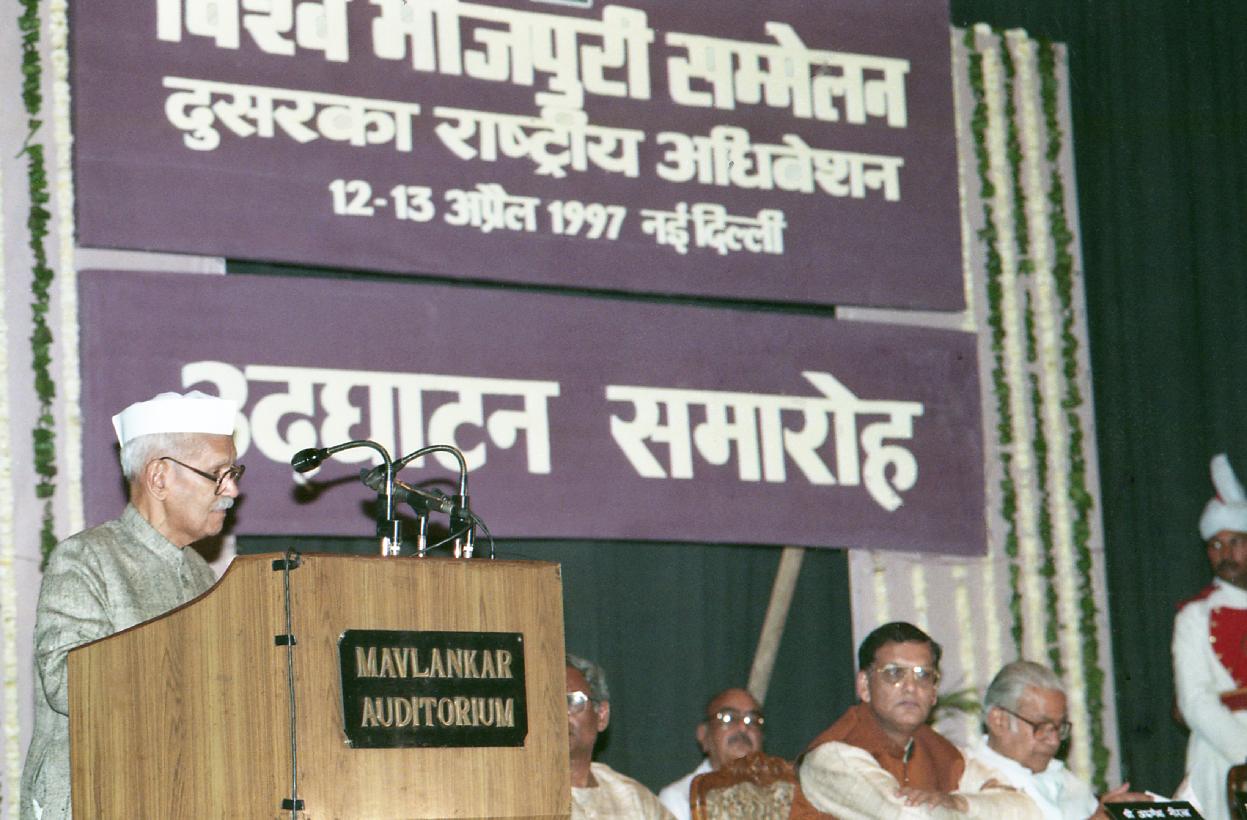 | Caption: | The President of India, Dr. Shankar Dayal Sharma inaugurating the Third National Bhojpuri Convention, organised by SETU Charitable Trust, at Mavalankar Hall in New Delhi on April 12, 1997. |