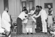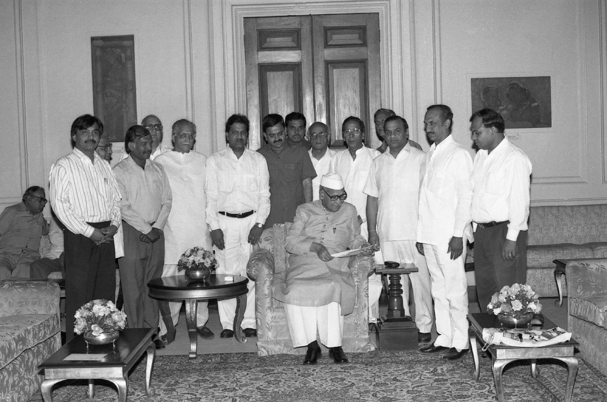 | Caption: | A Delegation from the Jain Mahasabha, Delhi led by Shri Jai Prakash Agarwal, MP(LS) calling on the President of India, Dr. Shankar Dayal Sharma at Rashtrapati Bhavan in New Delhi on April 19, 1997 |