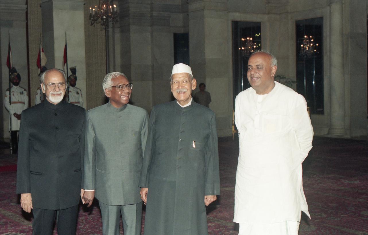 | Caption: | The President of India, Dr. Shankar Dayal Sharma hosting a dinner to the Council of Ministers at Rashtrapati Bhavan in New Delhi on April 21, 1997. |