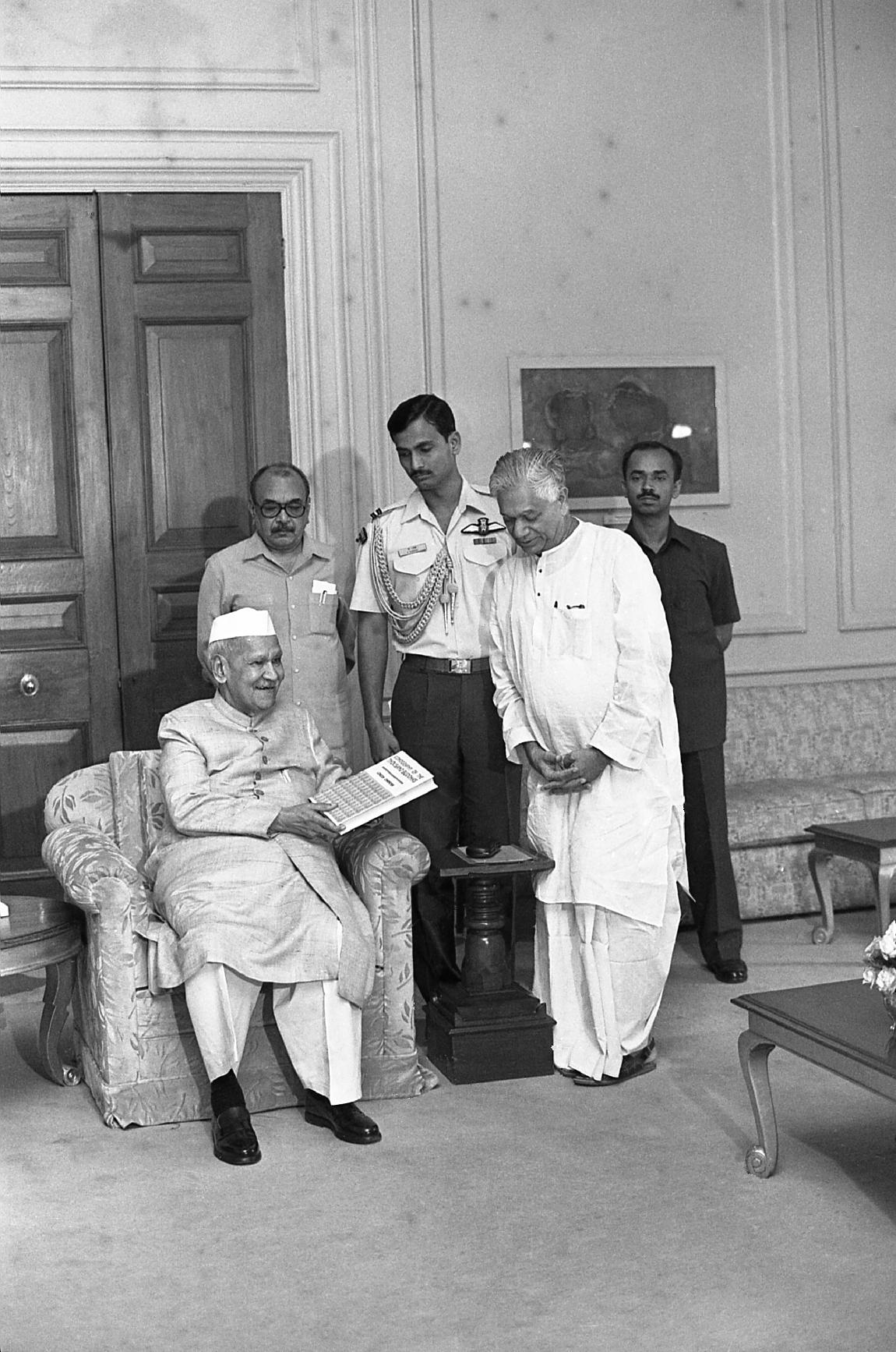 | Caption: | The President of India, Dr. Shankar Dayal Sharma receiving a copy of Book "The Thousand Buddhas" from Prof. Lokesh Chandra at Rashtrapati Bhavan in New Delhi on May 15, 1997 |
