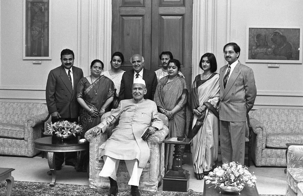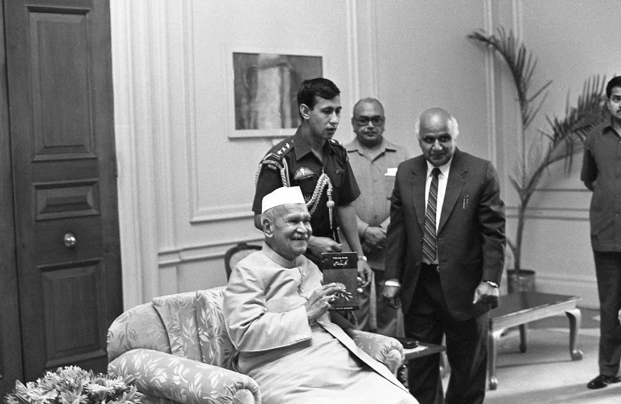 | Caption: | The President of India, Dr. Shankar Dayal Sharma receiving a copy of the book "Withering Bonds" from Shri B.M. Mehta at Rashtrapati Bhavan in New Delhi on March 31, 1997. |