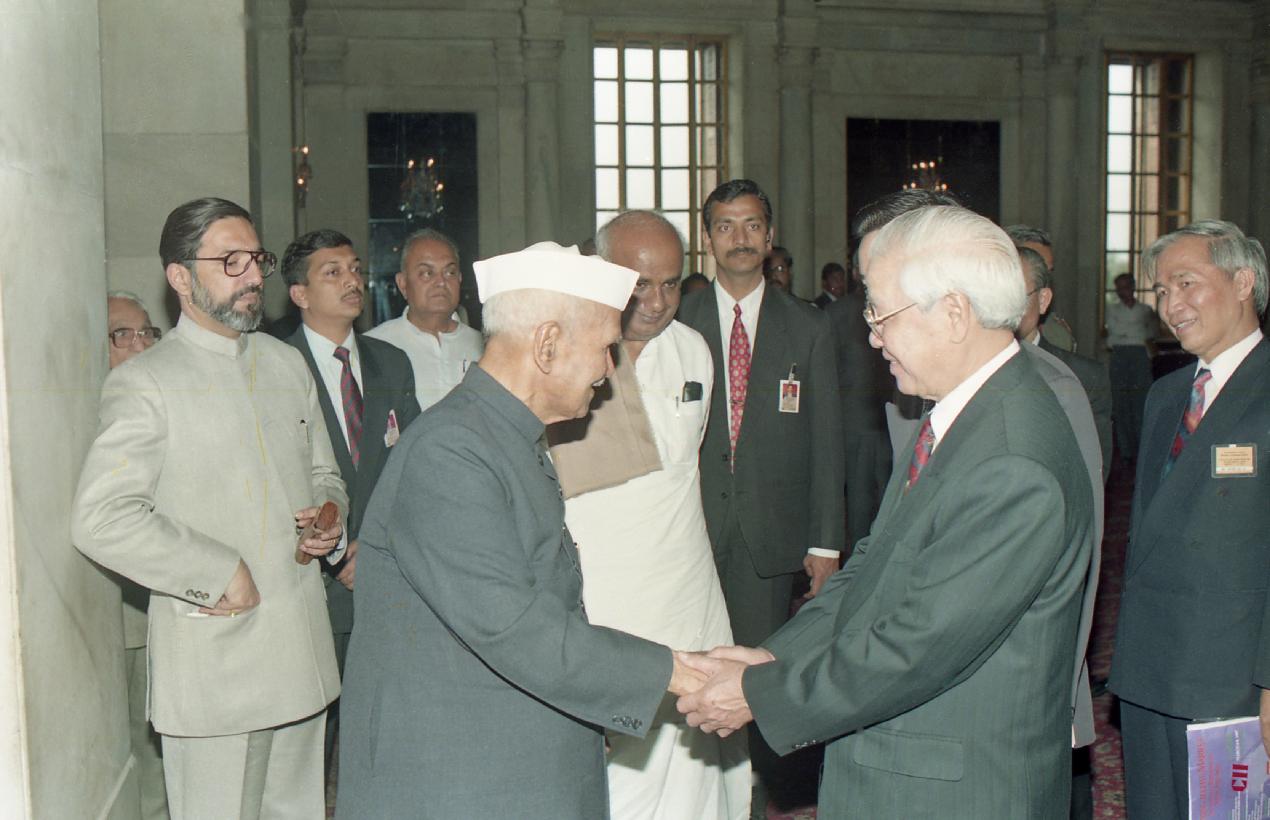 | Caption: | The President of India, Dr. Shankar Dayal Sharma hosting Lunch in honour of the Prime Minister of the Socialist Republic of Vietnam, HE Mr. Vo Van Kiet, at Rashtrapati Bhavan in New Delhi on March 08, 1997. |