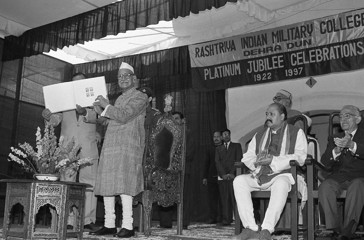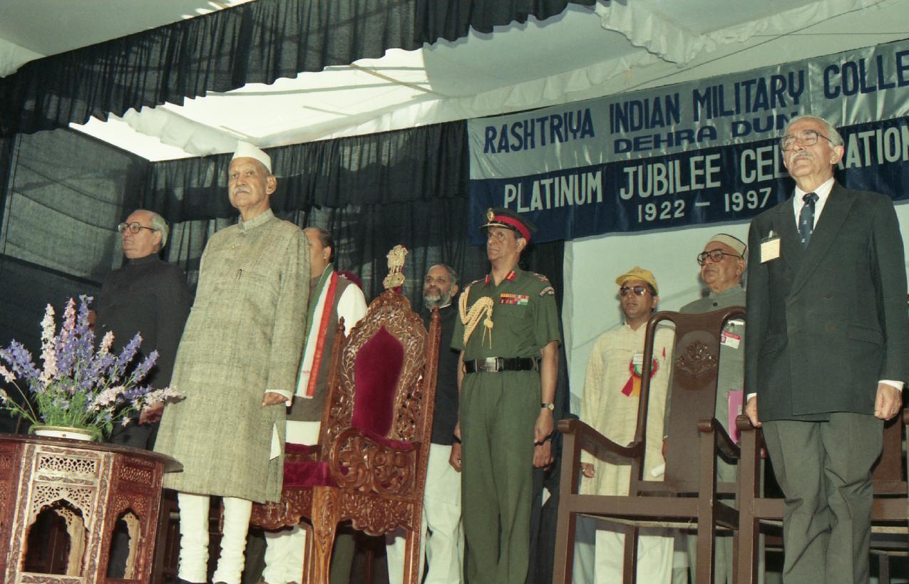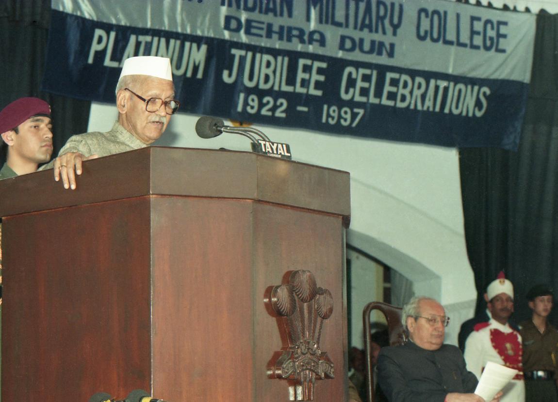 | Caption: | The President of India, Dr. Shankar Dayal Sharma addressing the Platinum Jubilee Celebrations of Rashtriya Indian Military College (RIMC) and releasing the First Day Cover and Book on the history of RIMC, at RIMC, in Dehradun on March 13, 1997. |