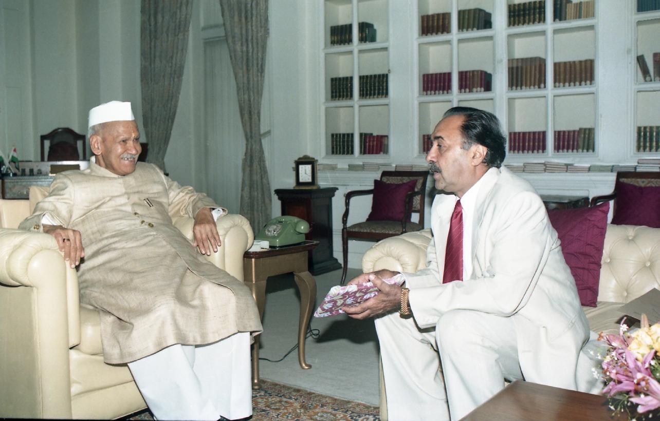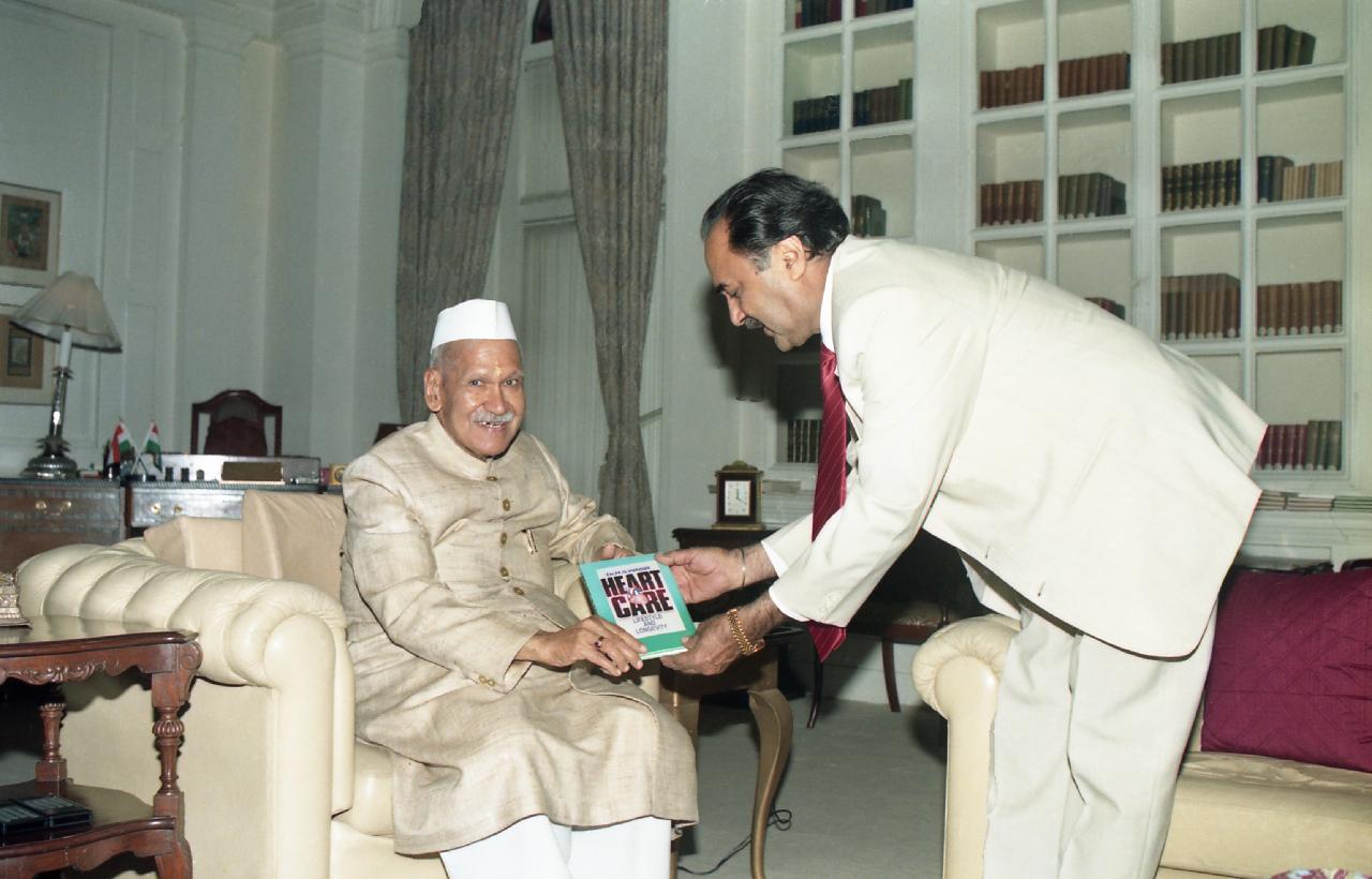 | Caption: | The President of India, Dr. Shankar Dayal Sharma receiving a book from Dr. Harbans Singh Wasir, at Rashtrapati Bhavan in New Delhi on March 26, 1997. |