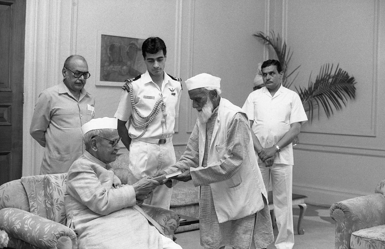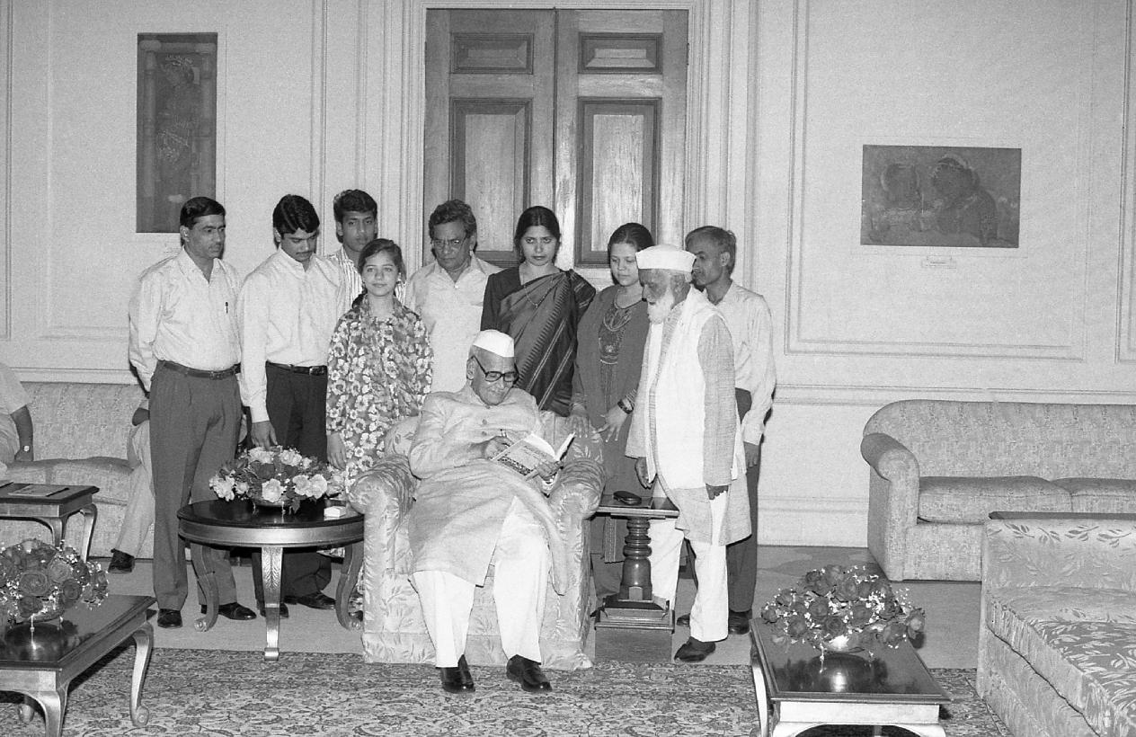 | Caption: | The President of India, Dr. Shankar Dayal Sharma receiving a copy of Book "Hindustani Musalmano Ka Jang-e-Azadi Me Hissa" from Syed Ibrahim Fikri at Rashtrapati Bhavan in New Delhi on April 07, 1997. |