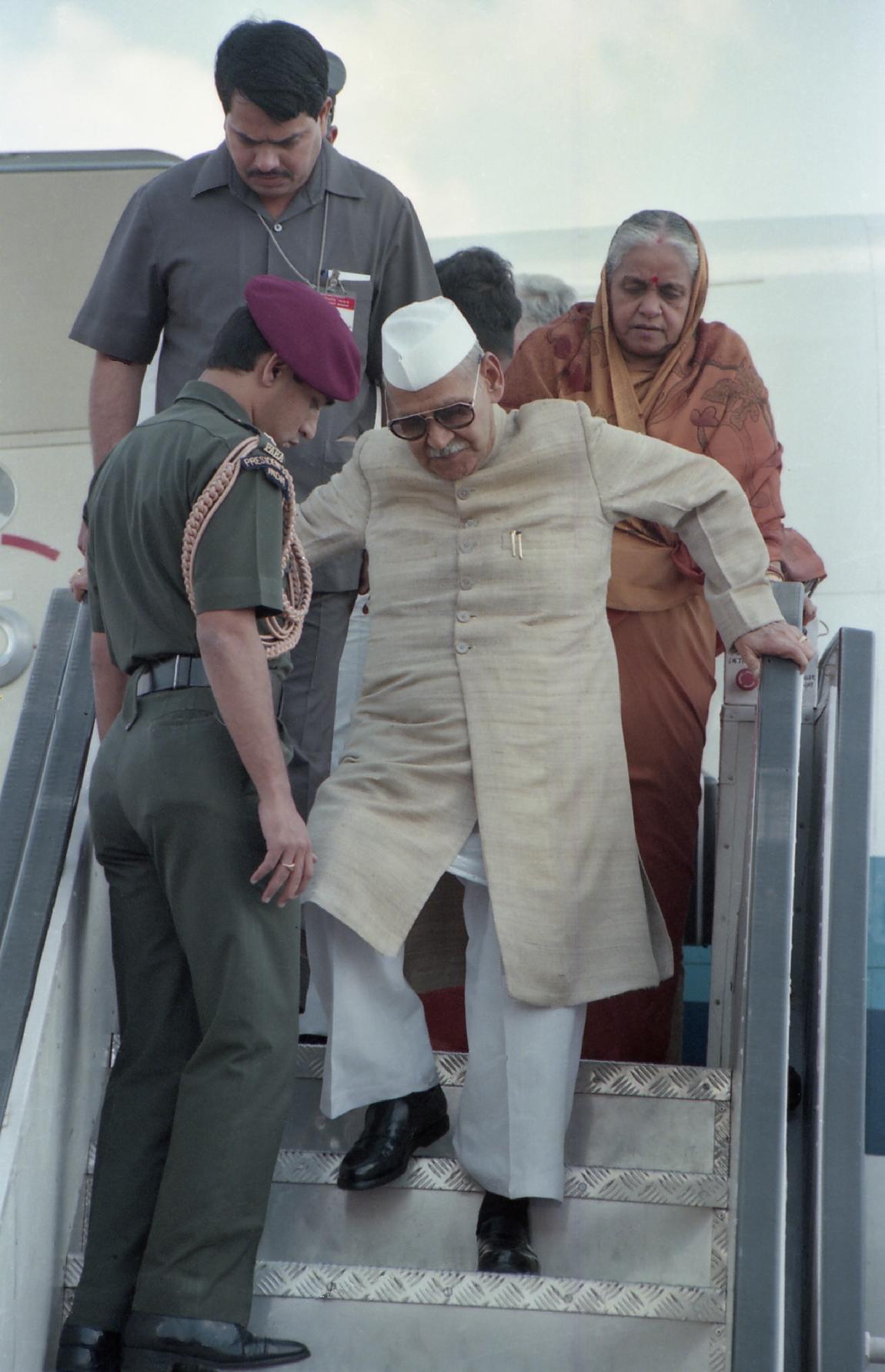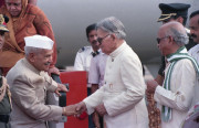 | Caption: | The President of India, Dr. Shankar Dayal Sharma being received by the Governor, Karnataka, Shri Khurshed Alam Khan and the Chief Minister, Karnataka, Shri J. H. Patel, at Bangalore airport on May 30, 1997 |