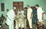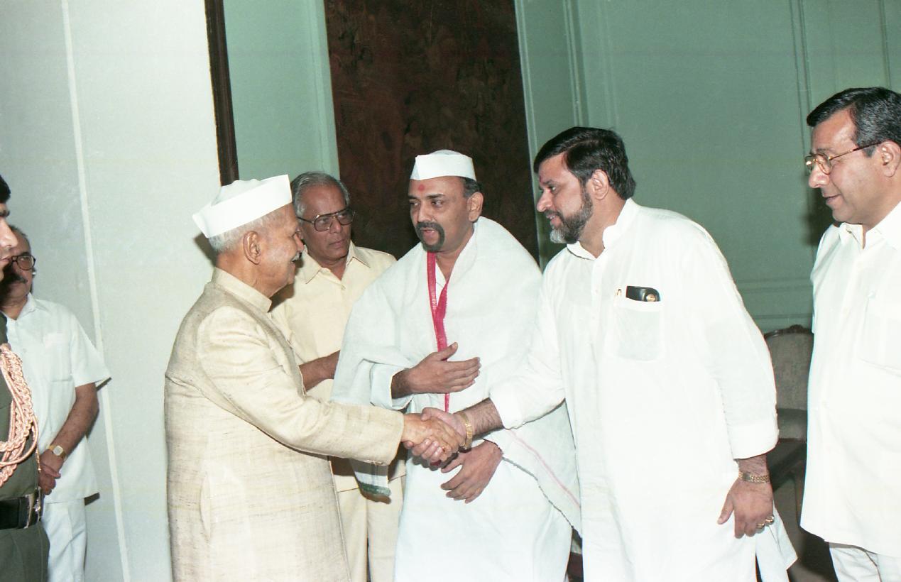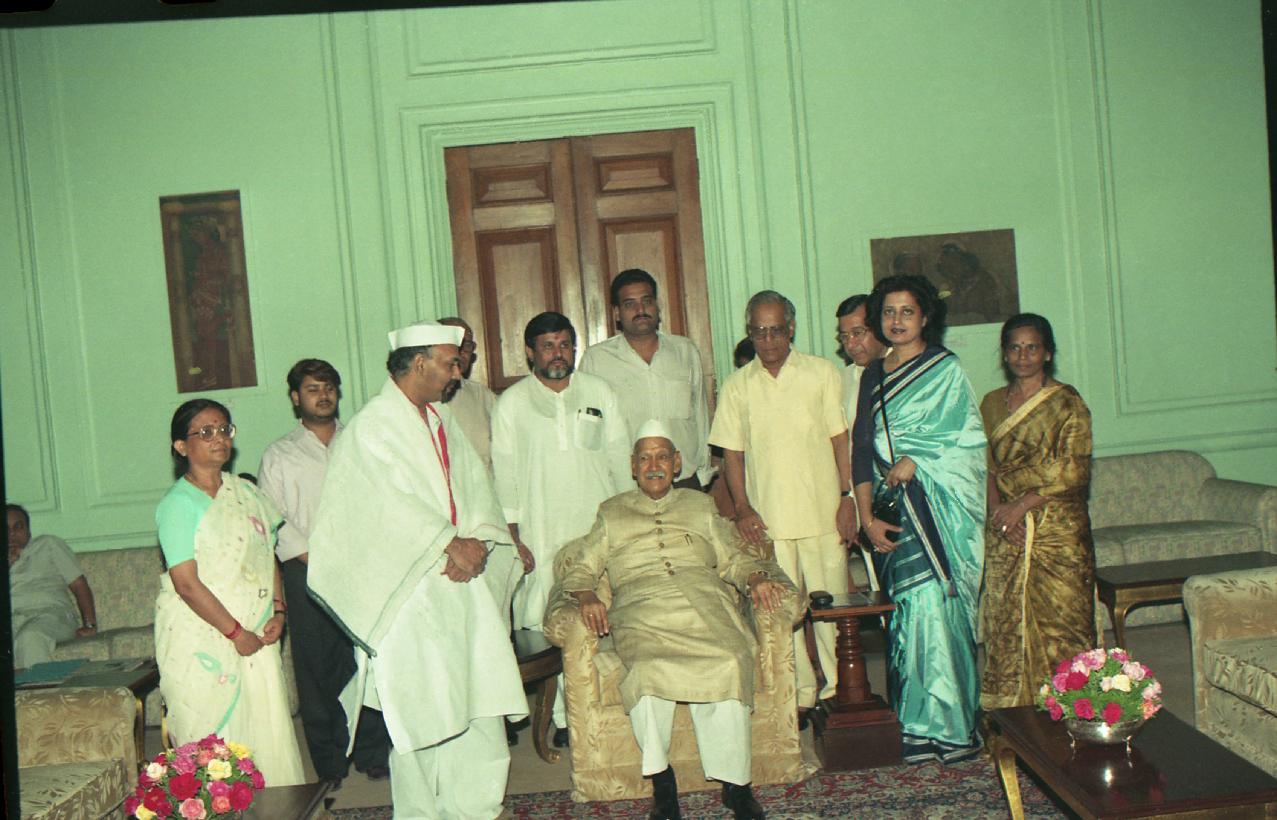 | Caption: | The President of India, Dr. Shankar Dayal Sharma receiving a set of "Encyclopaedia of Ecology and Environment" and "Paristhitiki Evam Paryavaran Vishwakosh" brought out by the Makhanlal Chaturvedi National University of Journalism, Bhopal and Indian Institute of Ecology and Environment, Delhi at Rashtrapati Bhavan in New Delhi on May 05, 1997. |