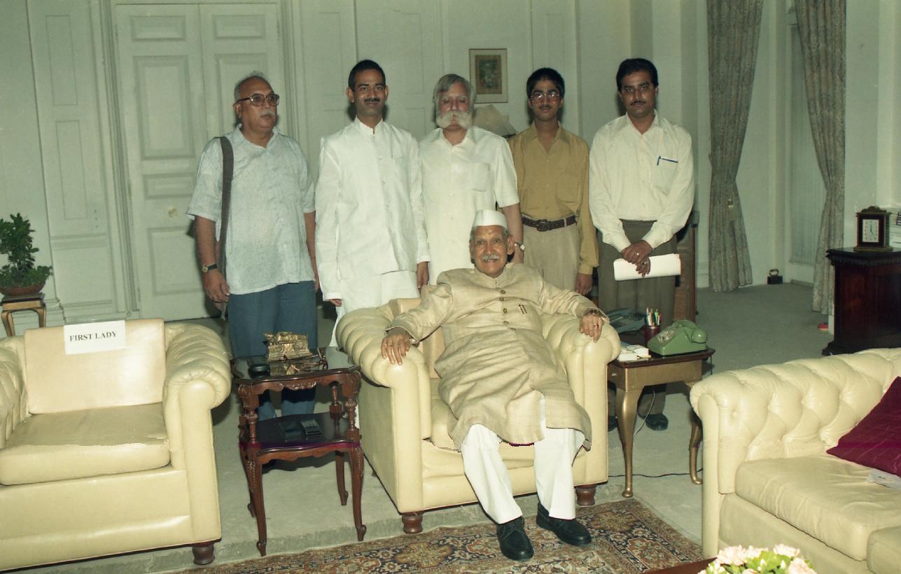 | Caption: | The President of India, Dr. Shankar Dayal Sharma meeting with Shri Ganga Charan Rajput with others at Rashtrapati Bhavan in New Delhi on June 12, 1997. |