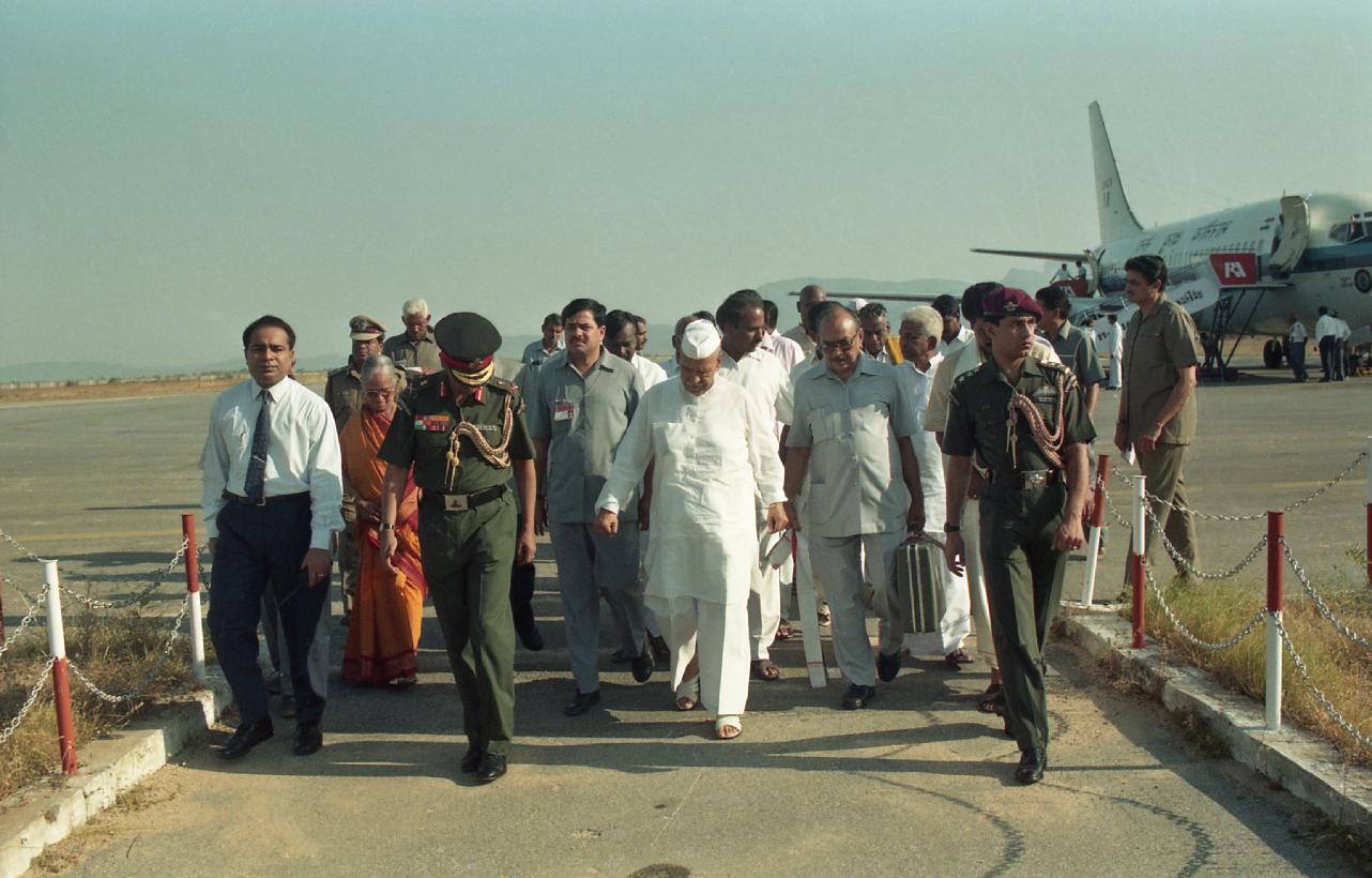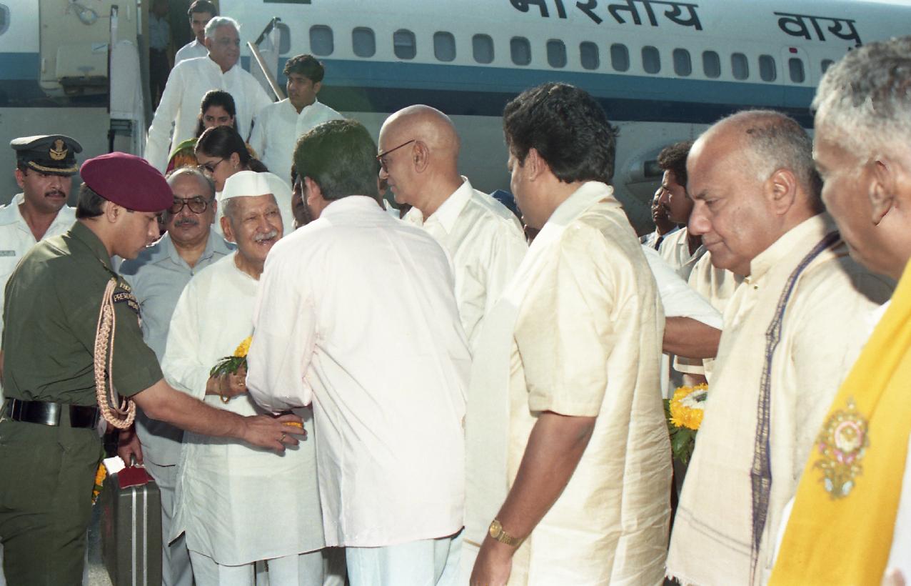 | Caption: | The President of India, Dr. Shankar Dayal Sharma being received, at Tirupati airport, Andhra Pradesh on June 01, 1997. |