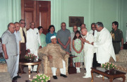 | Caption: | The President of India, Dr. Shankar Dayal Sharma releasing the Cancer Seal of Indraprastha Cancer Society and Research Centre at Rashtrapati Bhavan in New Delhi on July 10, 1997 |