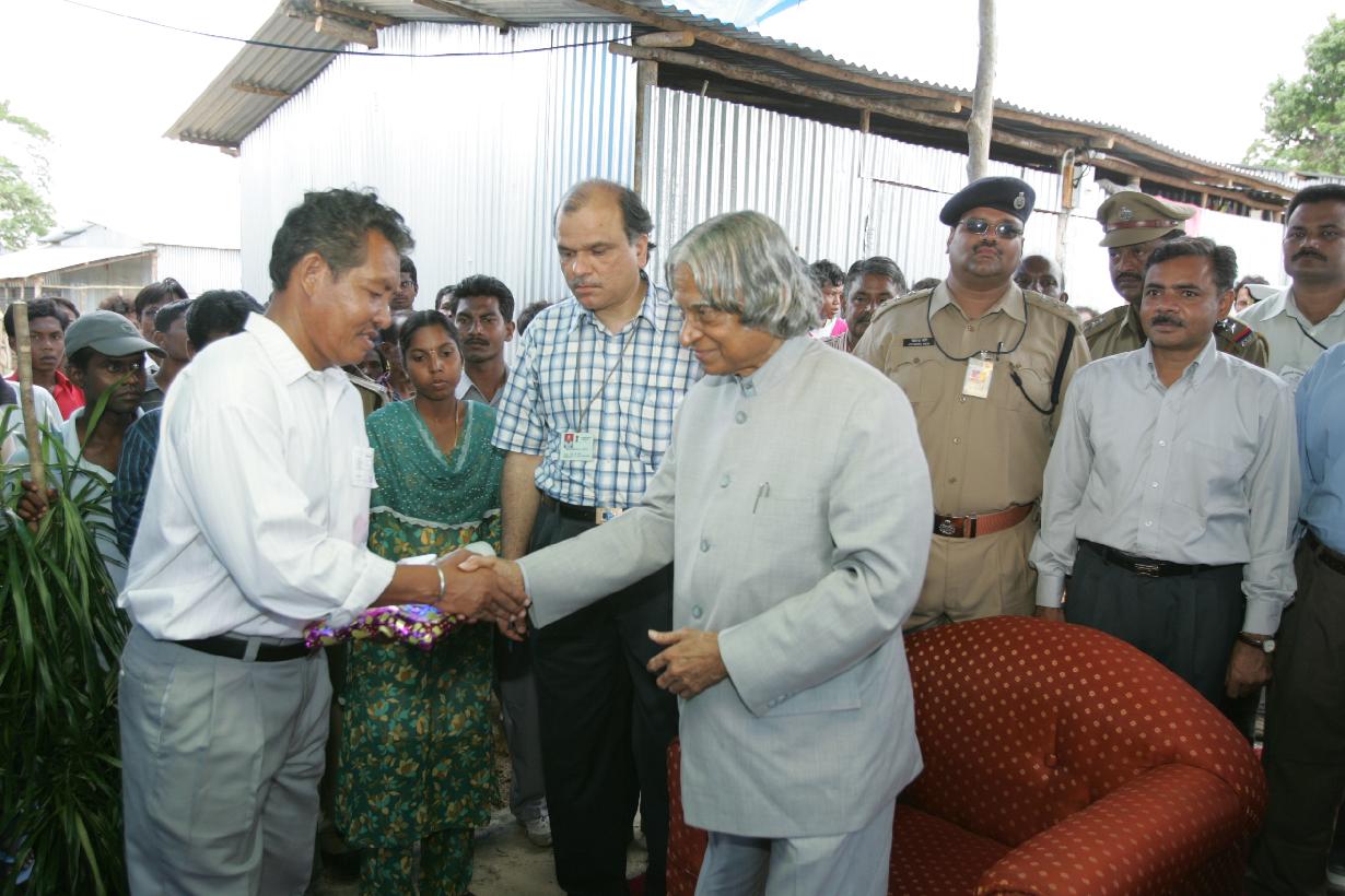 | Caption: | The President of India, Dr A P J Abdul Kalam visiting to the Shelters and meeting with the Local and Children at Campbell Bay in Andaman & Nicobar on May 07, 2005 |