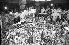 | Caption: | The President of India, Dr. Shankar Dayal Sharma paying floral tributes at the mortal remains of Shri Hari Krishna Shastri in New Delhi on June 17, 1997. |