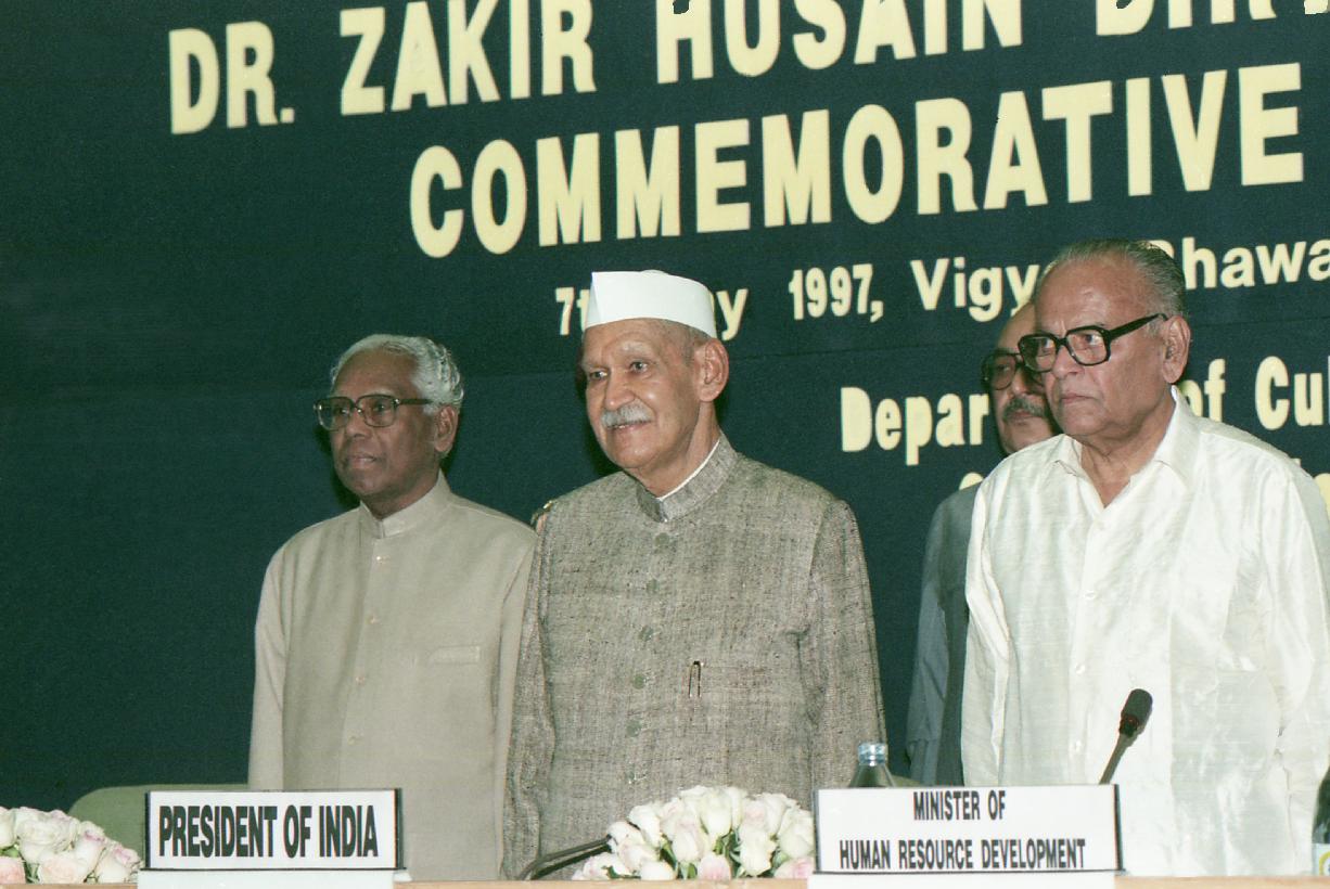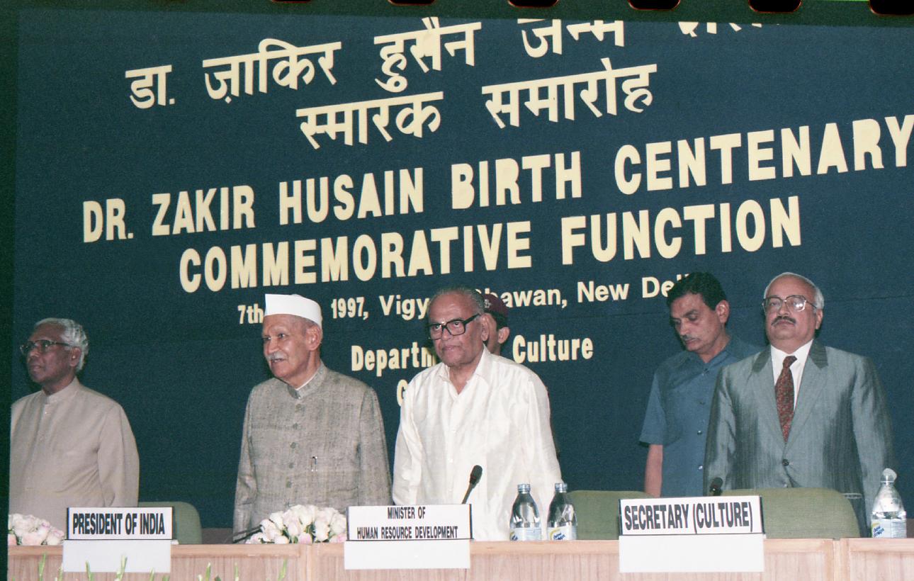 | Caption: | The President of India, Dr. Shankar Dayal Sharma at the Birth Centenary Commemorative function of Dr. Zakir Hussain at Vigyan Bhavan in New Delhi on May 07, 1997. |