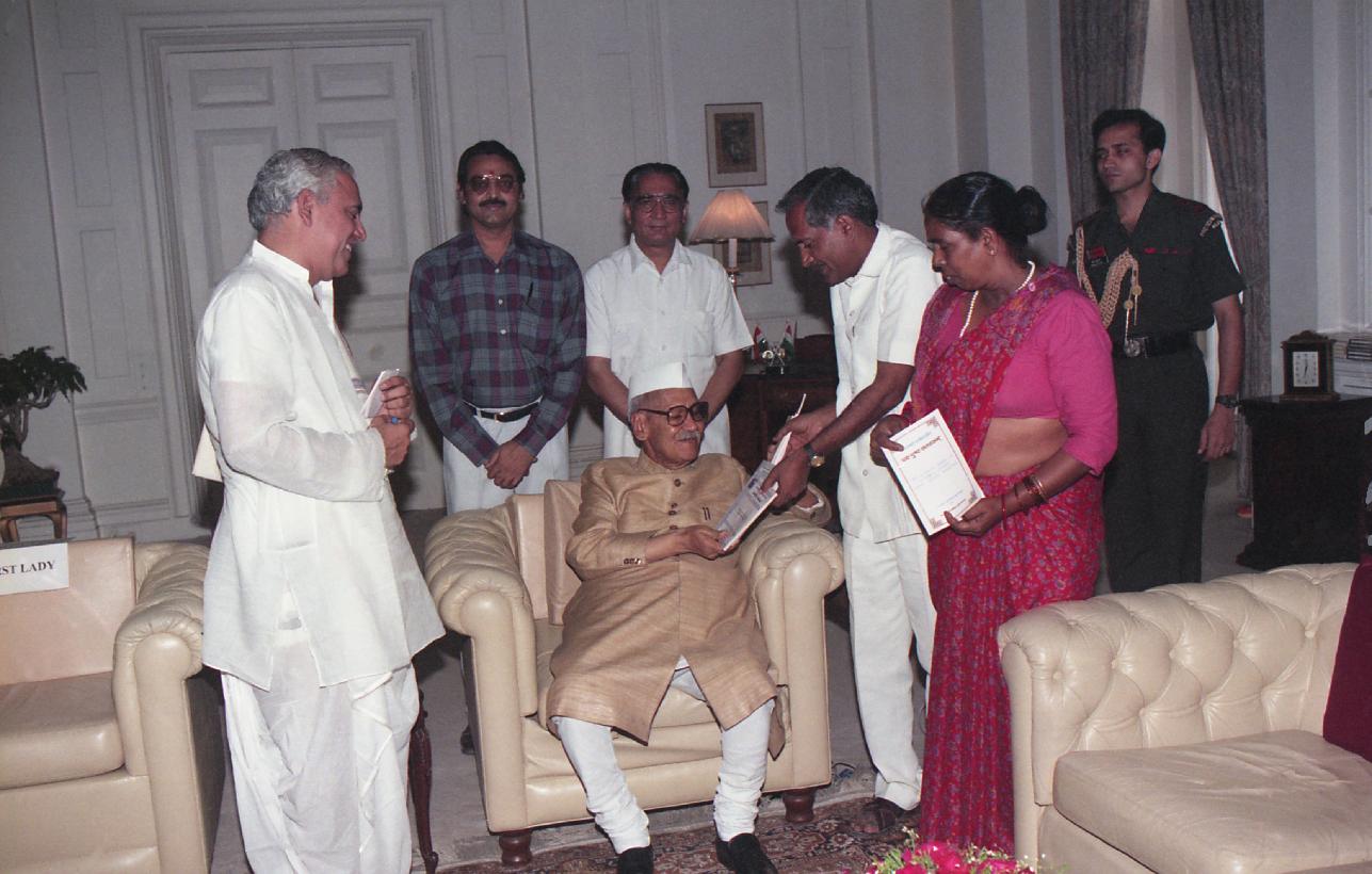 | Caption: | The President of India, Dr. Shankar Dayal Sharma meeting with Dr. Sanddhumna Acharya with others at Rashtrapati Bhavan in New Delhi on May 08, 1997 |