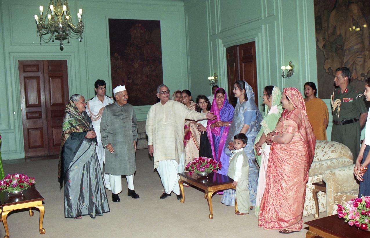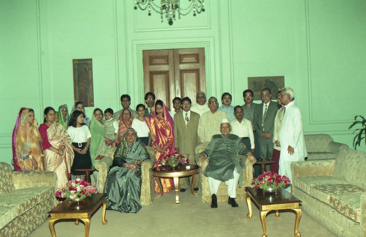 | Caption: | The President of India, Dr. Shankar Dayal Sharma meeting with Smt. & Shri Nawal Kishore Sharma, MP (LS) with their family members at Rashtrapati Bhavan in New Delhi on May 16, 1997 |
