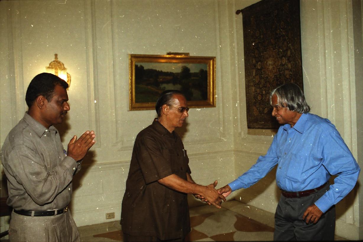 | Caption: | The President of India, Dr A P J Abdul Kalam with M Sc and B Sc (Physics) Students from Sri Ramakrishna Mission Vidyalaya College of Arts and Sciences, Coimbatore at the Yellow Drawing Room of Rashtrapati Bhavan in New Delhi on Sep 30, 2002 |