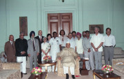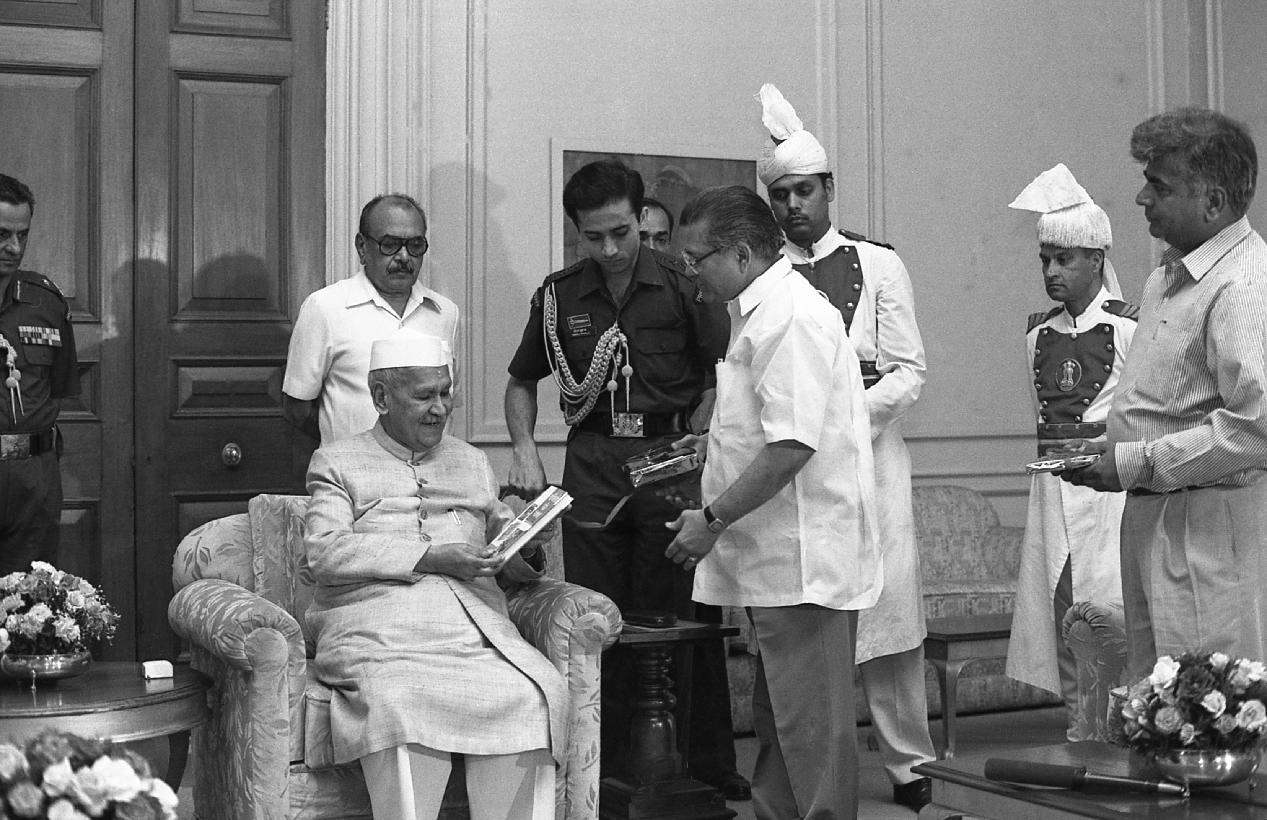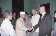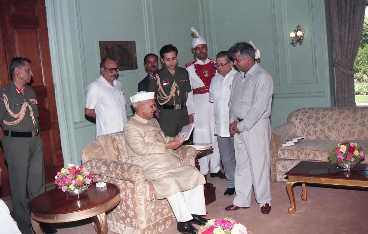 | Caption: | The President of India, Dr. Shankar Dayal Sharma receiving copy of Books "Burden of Bondage" and "Vanchiton Ki Vyatha" from Dr. L. Mishra and "Bonded Labour Justice Through Judiciary" from Dr. Mahavir Jain at Rashtrapati Bhavan in New Delhi on May 10, 1997 |