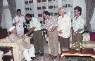 | Caption: | The President of India, Dr. Shankar Dayal Sharma receiving a copy of Book "Naashta Mantri Ka Garib Ke Ghar" from Shri Prabha Shankar Upadhyay and Shri Dev Dutt Sharma at Rashtrapati Bhavan in New Delhi on May 09, 1997 |
