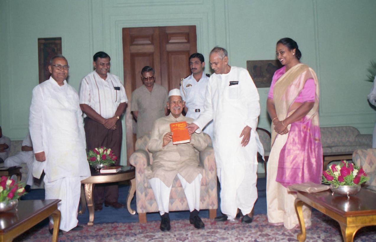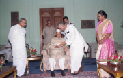 | Caption: | The President of India, Dr. Shankar Dayal Sharma meeting with H.E. Gen. Chi Haotian, Minister of Defence, People's Republic of China with his wife at Rashtrapati Bhavan in New Delhi on September 12, 1994. |