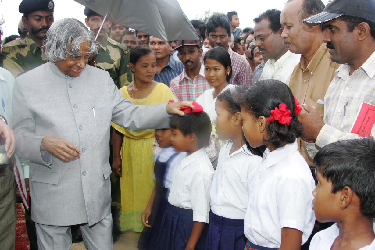 | Caption: | The President of India, Dr A P J Abdul Kalam visiting to the Shelters and meeting with the Children at Terressa in Andaman & Nicobar on May 07, 2005 |