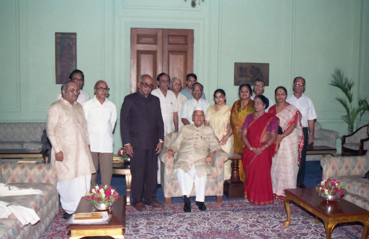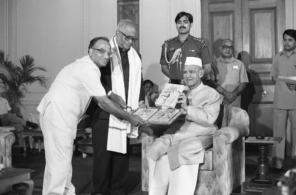 | Caption: | The President of India, Dr. Shankar Dayal Sharma receiving a copy of the book "Periya Puranam" of Dr. Ravinder Kumar Seth at Rashtrapati Bhavan in New Delhi on September 13, 1994. |