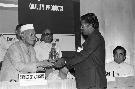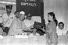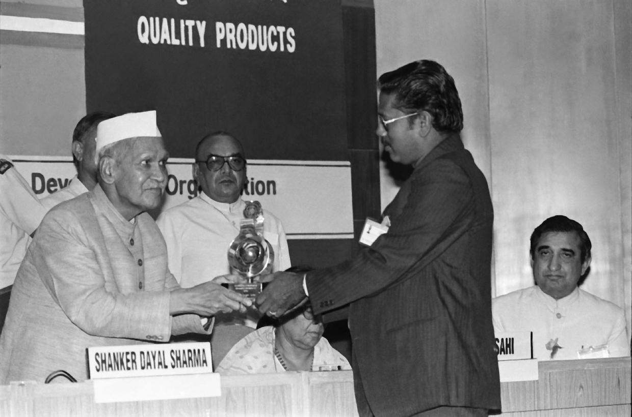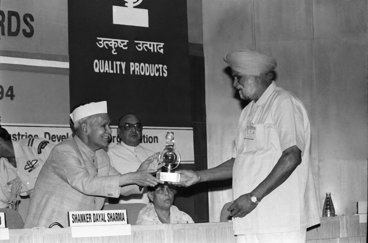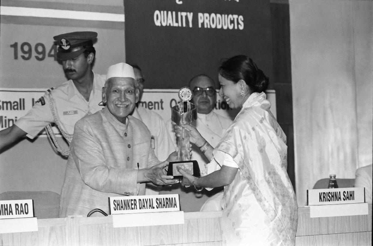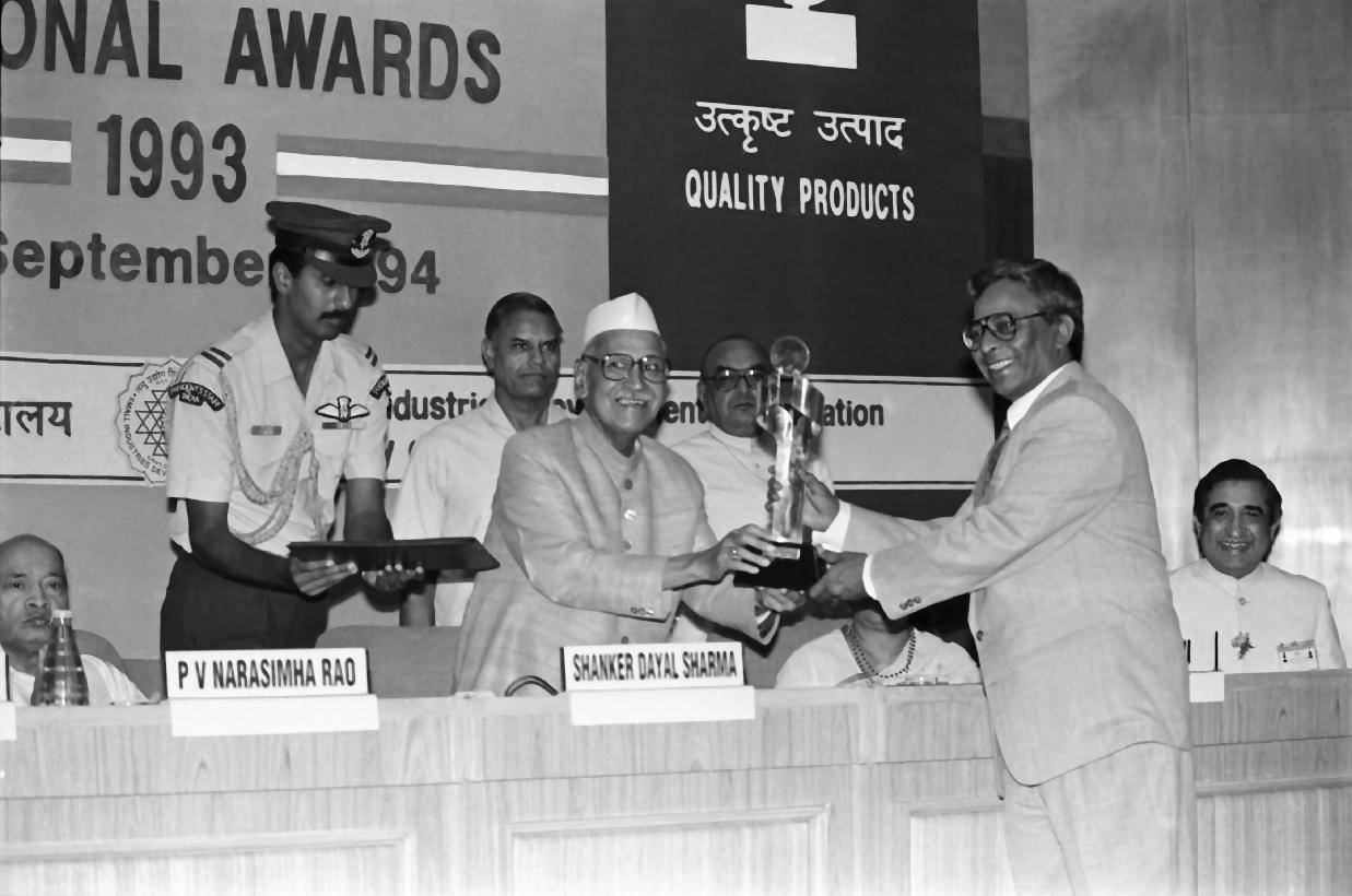 | Caption: | The President of India, Dr. Shankar Dayal Sharma presenting National Awards 1993 to Outstanding Small Scale Entrepreneurs and for Quality Products at Vigyan Bhavan in New Delhi on September 16, 1994. |