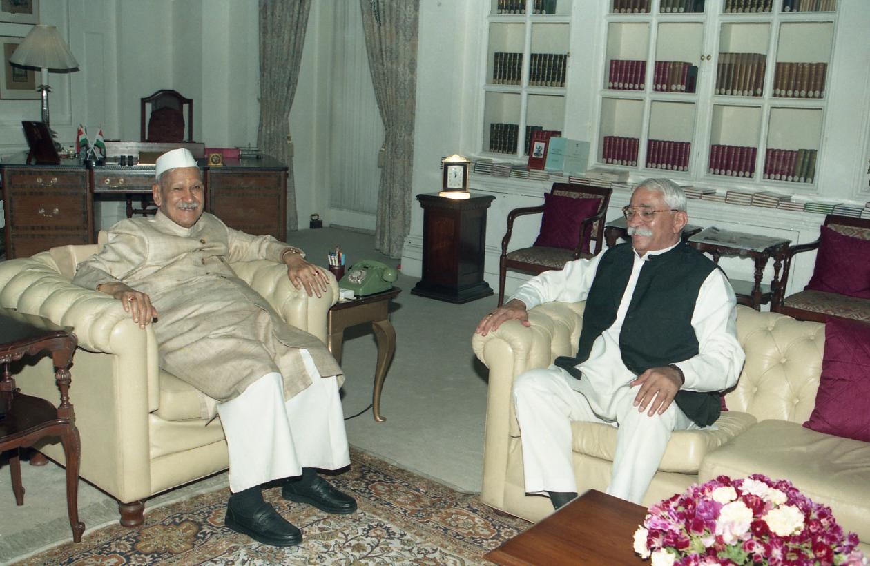 | Caption: | The President of India, Dr. Shankar Dayal Sharma meeting with Shri Hazarilal Raghubansi at Rashtrapati Bhavan in New Delhi on June 06, 1997. |