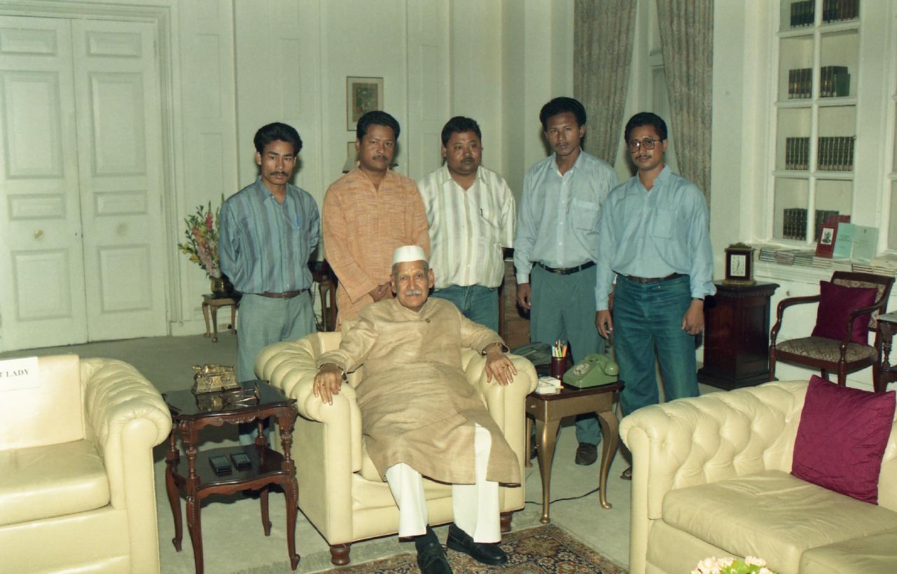 | Caption: | A Member Delegation from the Tribal Student's Federation, Assam led by Shri Ranoj Pegu calling on the President of India, Dr. Shankar Dayal Sharma at Rashtrapati Bhavan in New Delhi on June 11, 1997. |